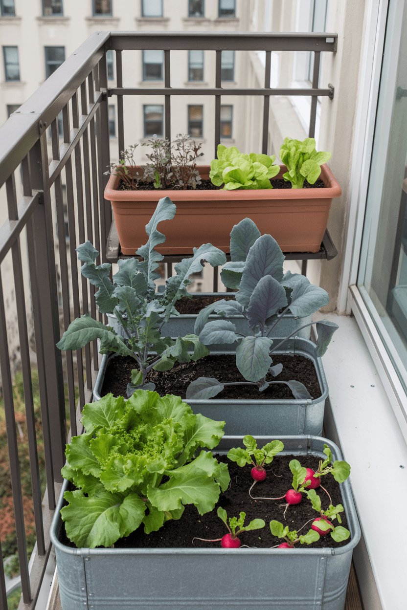 Even on a balcony, kale, lettuce, and radishes thrive in planters. Choose lightweight containers and a good potting mix. Regular feeding with liquid fertilizer keeps these plants producing fresh leaves right outside your door.