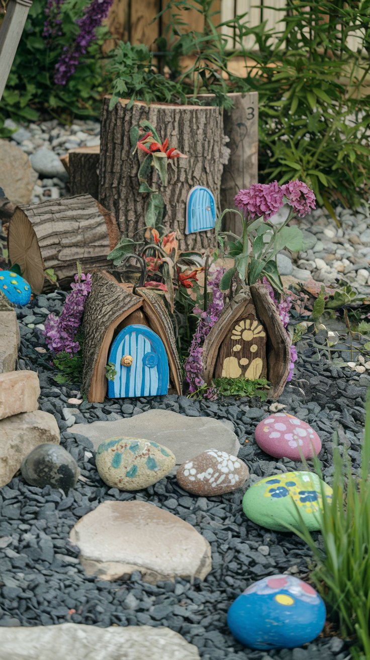 Transform logs and rocks into miniature fairy houses by painting them with whimsical designs. Scatter them around potted plants or flower beds to create a playful nook that sparks imagination. Add moss and small figurines for extra detail.