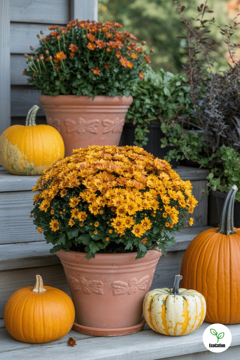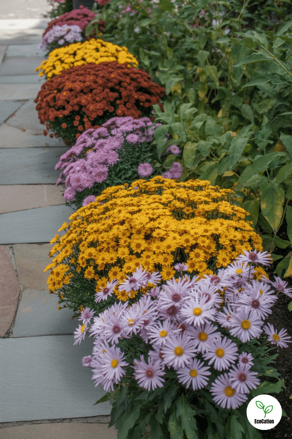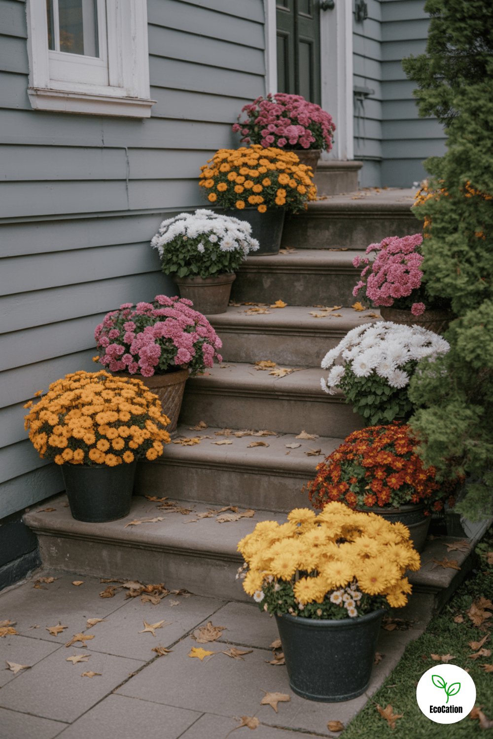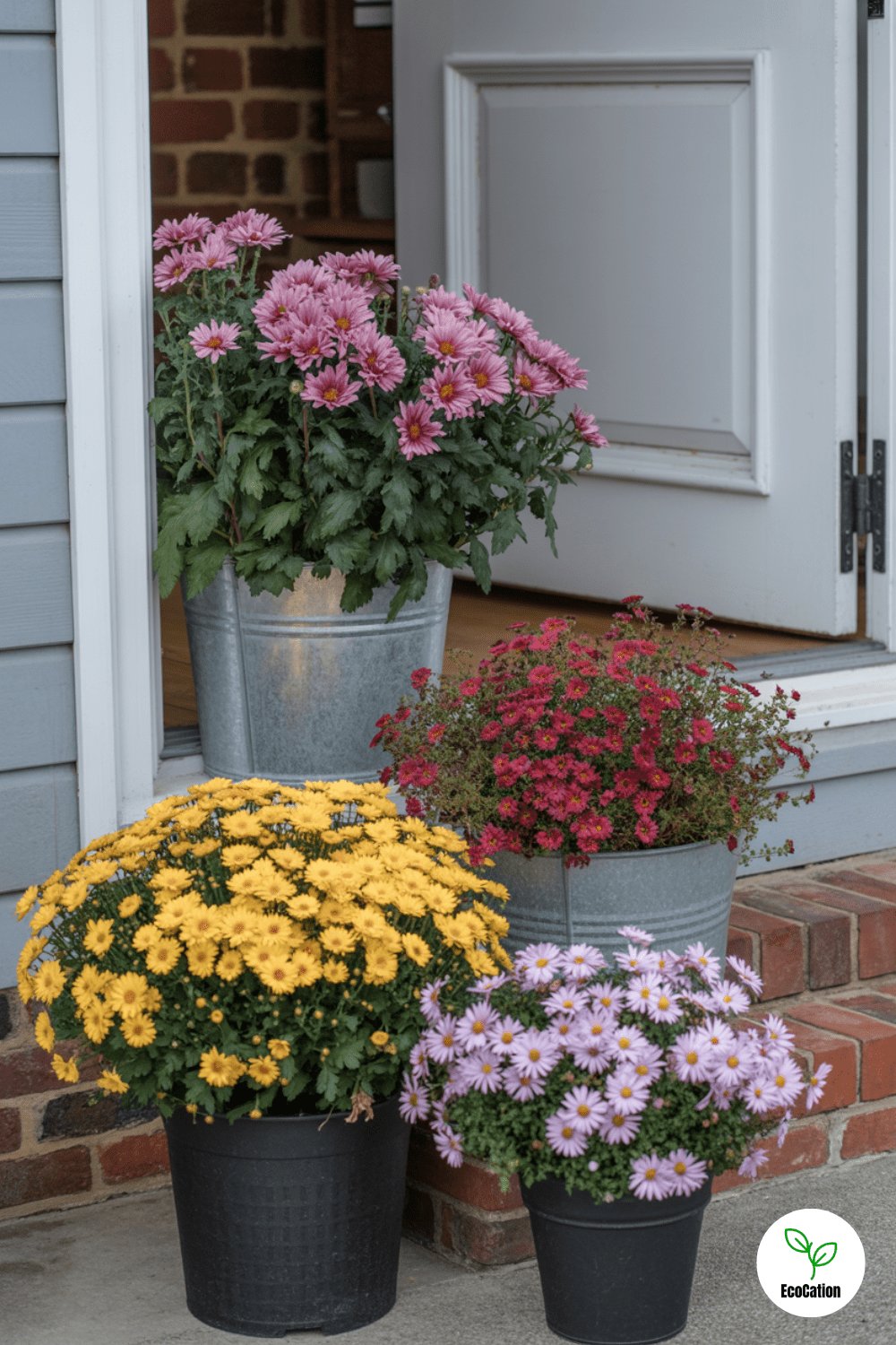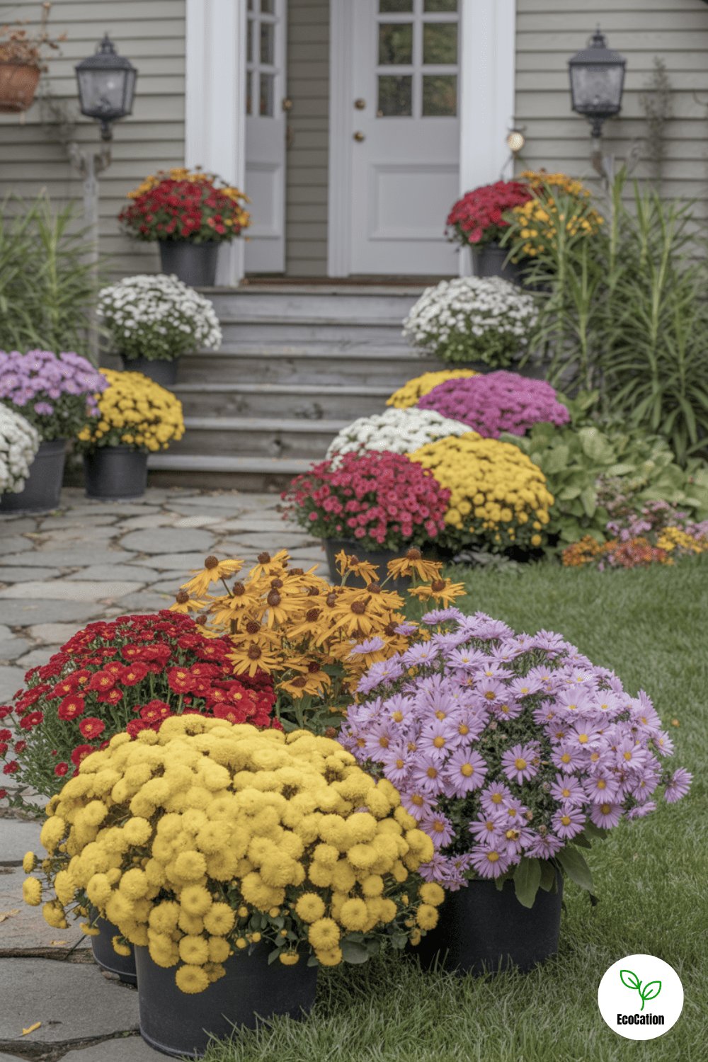 Frame your home s entrance with tall pots of chrysanthemums and asters. It creates a bold, colorful welcome for guests. Choose varieties with staggered bloom times to keep the display looking fresh all season.