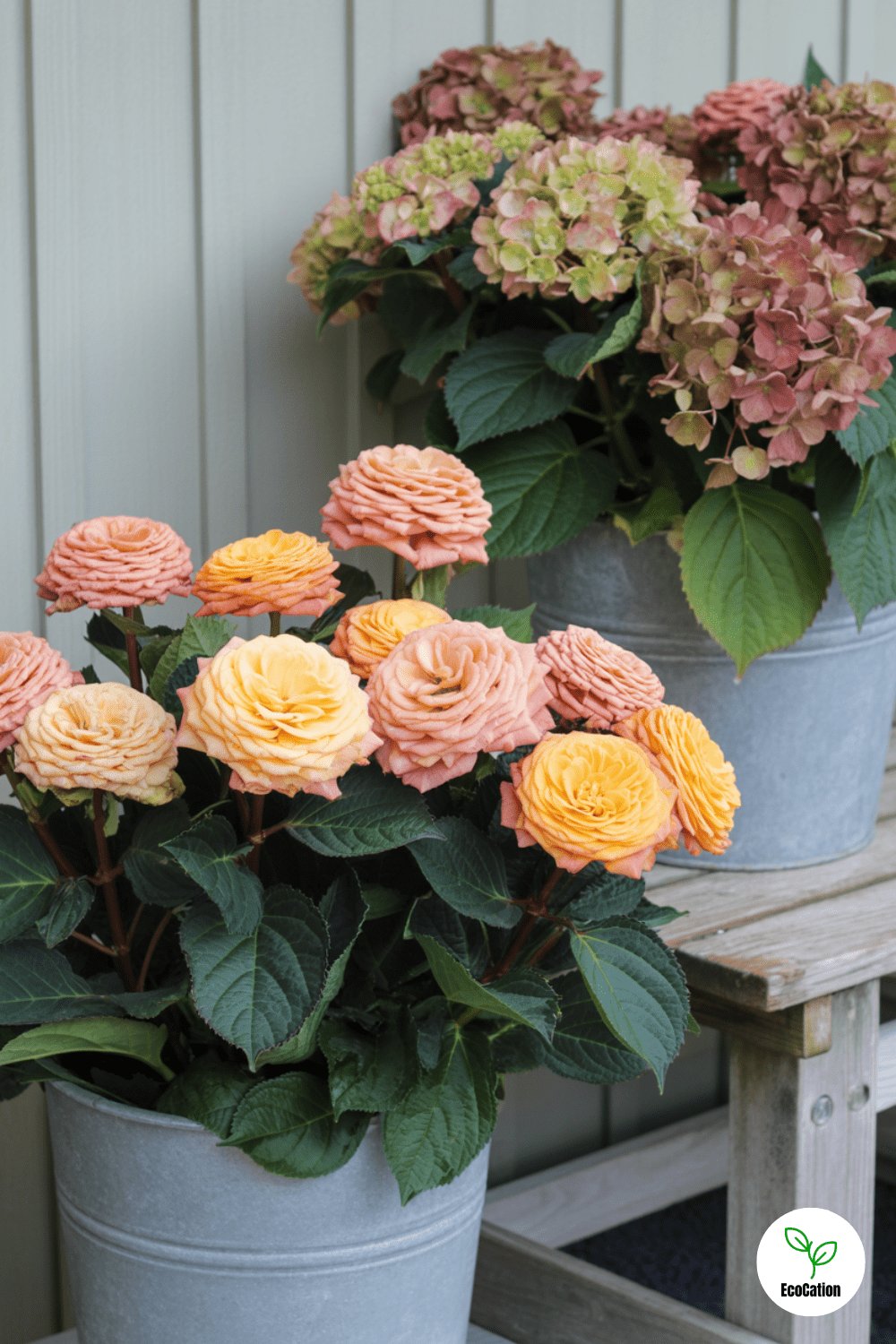 Combine warm autumn flowers with fading hydrangeas for a soft, romantic display. The muted tones blend perfectly with the season s atmosphere. Use a mix of cream, peach, and burgundy blooms to tie the look together.
