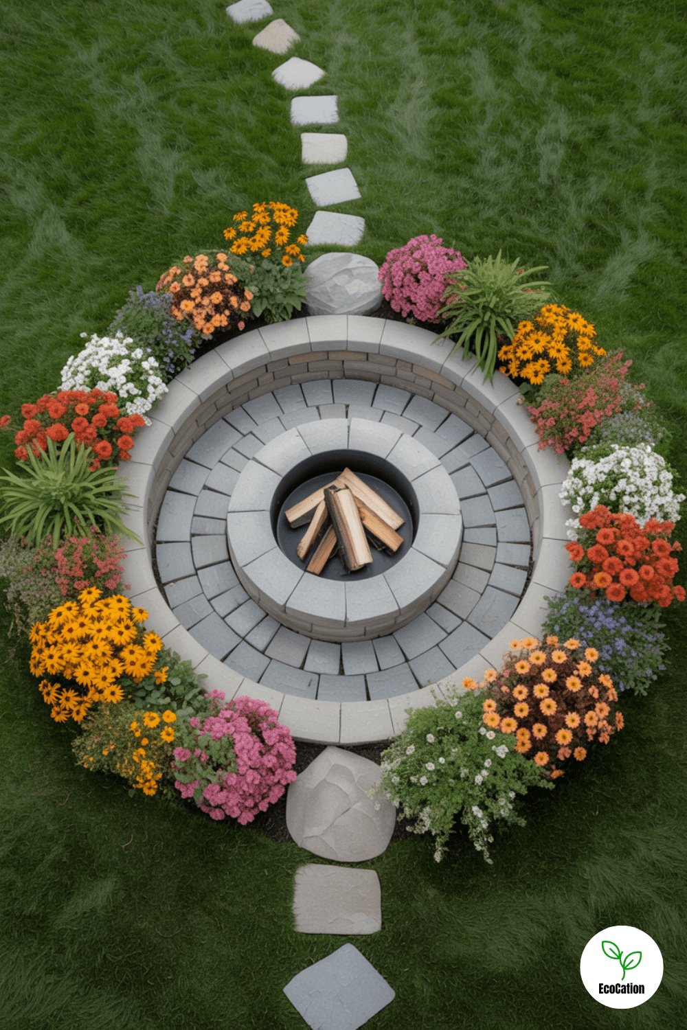 Circle your fire pit with mums, sedum, or other fall perennials for a cozy outdoor retreat. The flowers soften the space and make gatherings even more inviting. Stick to hardy varieties that can handle the heat.