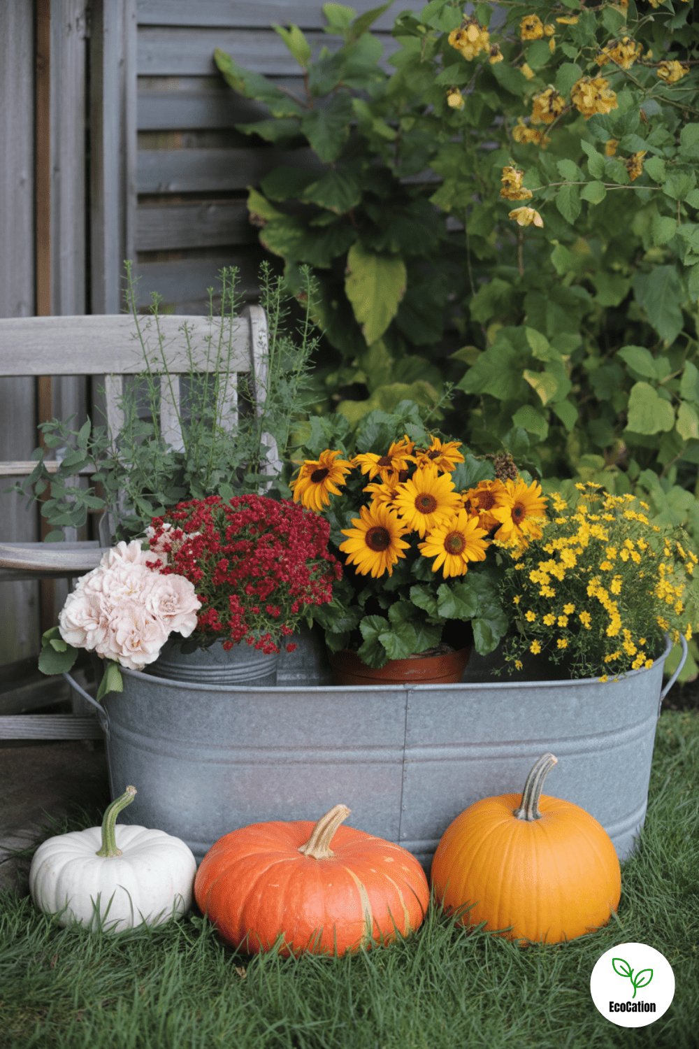 Style galvanized tubs with fall flowers and pumpkins for rustic seasonal charm. They re durable, weather-resistant, and give off vintage vibes. Add handles of straw or cornstalks nearby to enhance the look.
