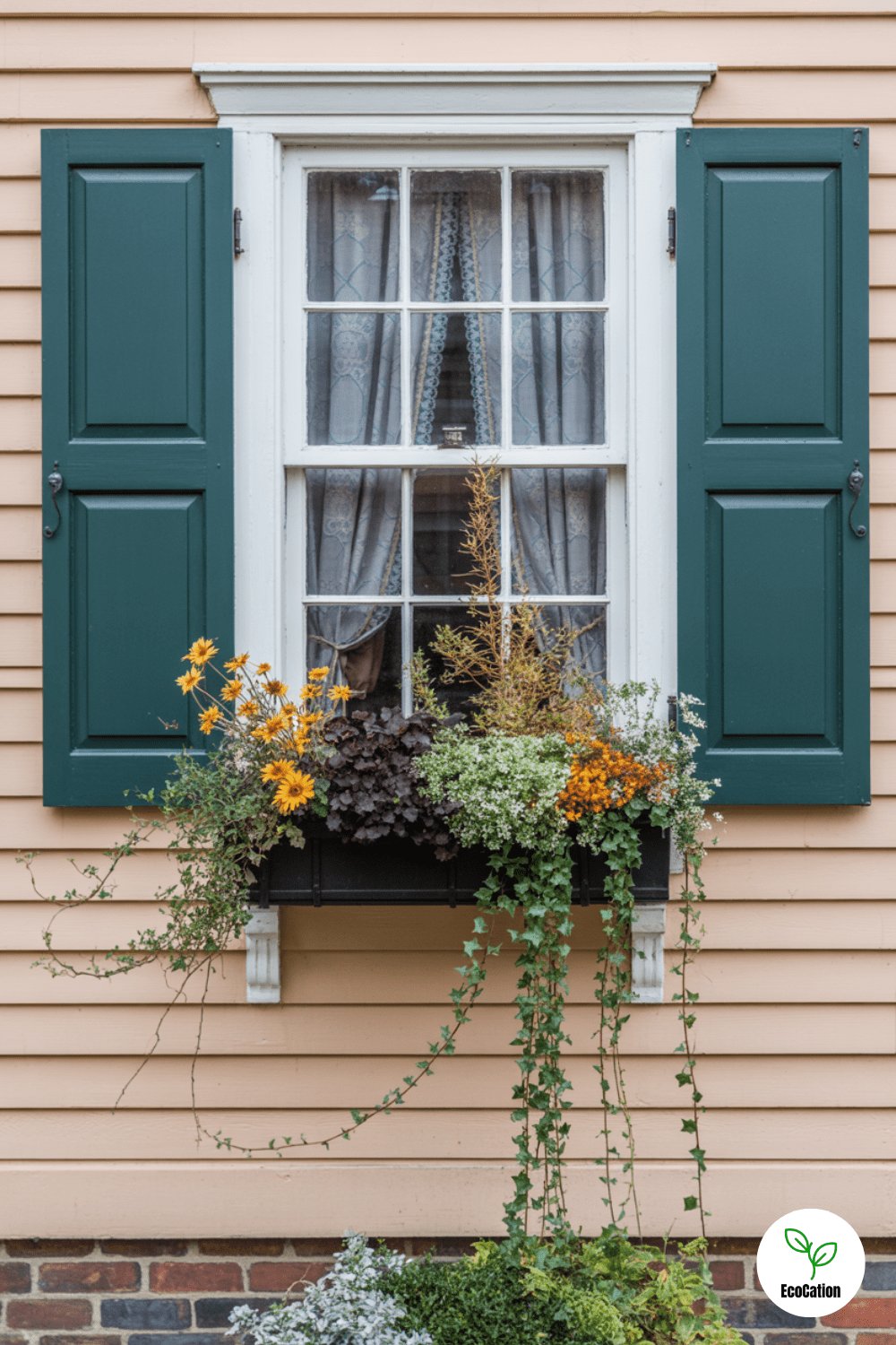 Fill window boxes with chrysanthemums and trailing ivy for instant curb appeal. The cascading greenery paired with colorful blooms makes your home feel alive with fall energy. Refresh the soil with compost to keep flowers thriving.