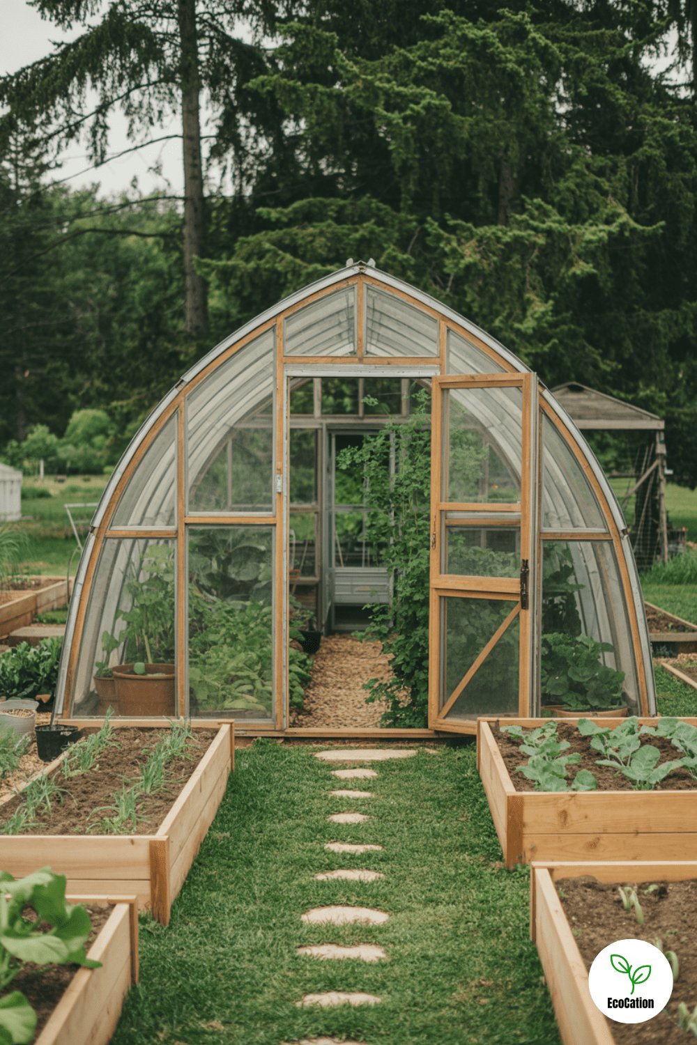A greenhouse built from reclaimed glass sits center stage, flanked by raised beds ready for year-round growing. It s ideal for gardeners who want to extend the season and keep delicate greens going even when frost hits. Use recycled materials where you can it adds character and cuts costs.