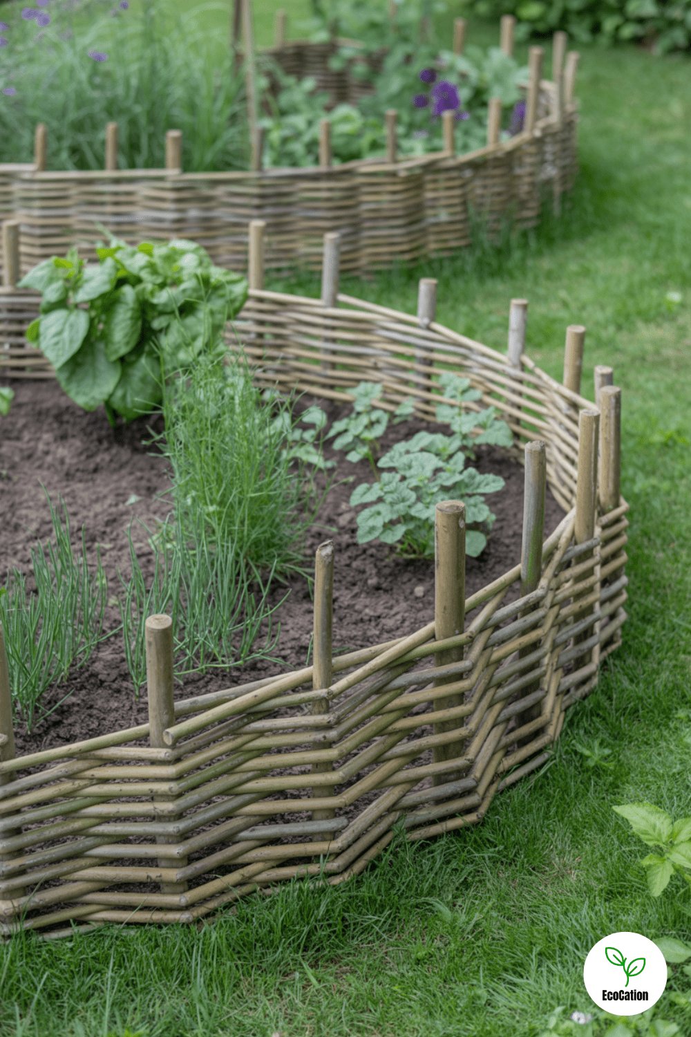 Curved panels of woven willow add fairytale charm to herb circles and cottage-style beds. They re low-maintenance and easy to bend into shape, making them perfect for round or irregular layouts. Stick the ends deep into the soil to anchor them firmly.