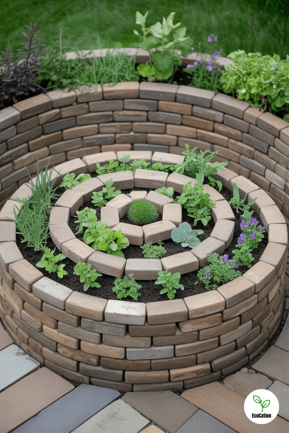 A spiral herb garden built from stacked bricks or stones is as practical as it is beautiful. The spiral shape creates microclimates sunny at the top, shadier at the base perfect for diverse herbs. It s a clever way to pack a lot into a small footprint.