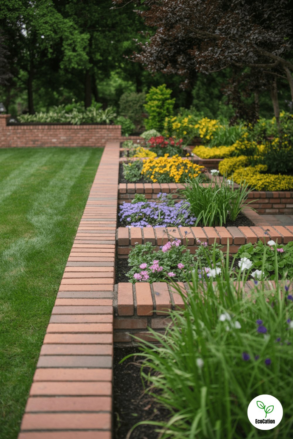 Vertical bricks create a clean, structured edge that works in both traditional and formal gardens. Press them tightly together and tamp into soil or sand to ensure they don t shift over time. Their height keeps mulch neatly in place.