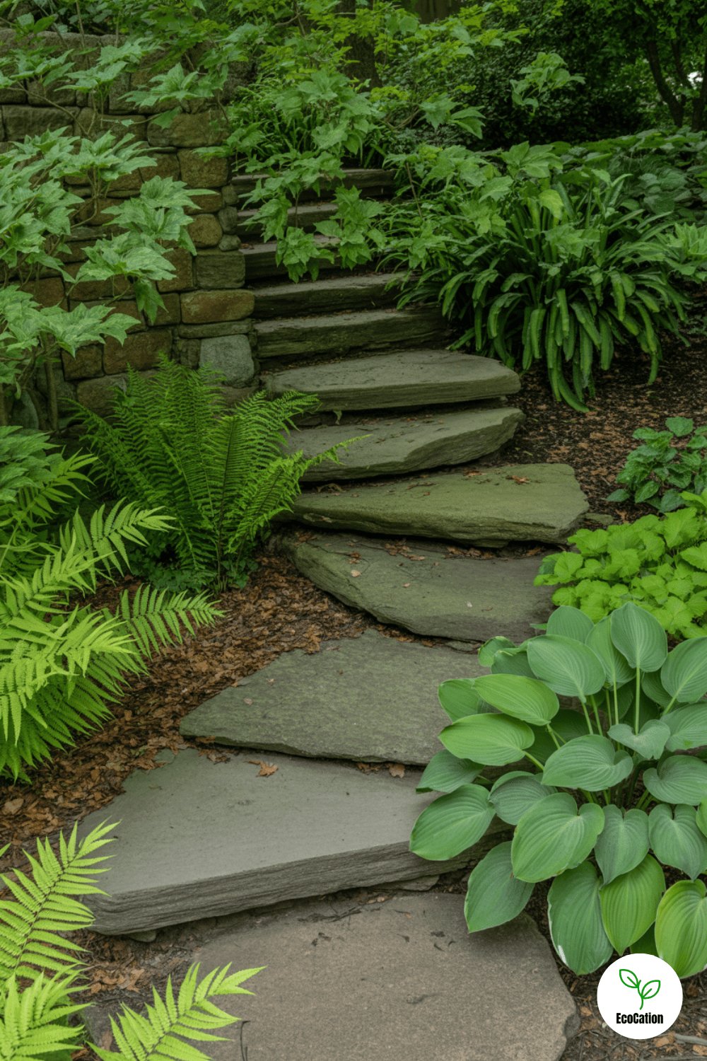 Moss-covered bricks in a staggered line bring age and softness to shady areas. They pair beautifully with hostas, ferns, and other shade-loving plants. If you don t already have moss, mist the bricks regularly and keep them out of direct sun to help it grow.
