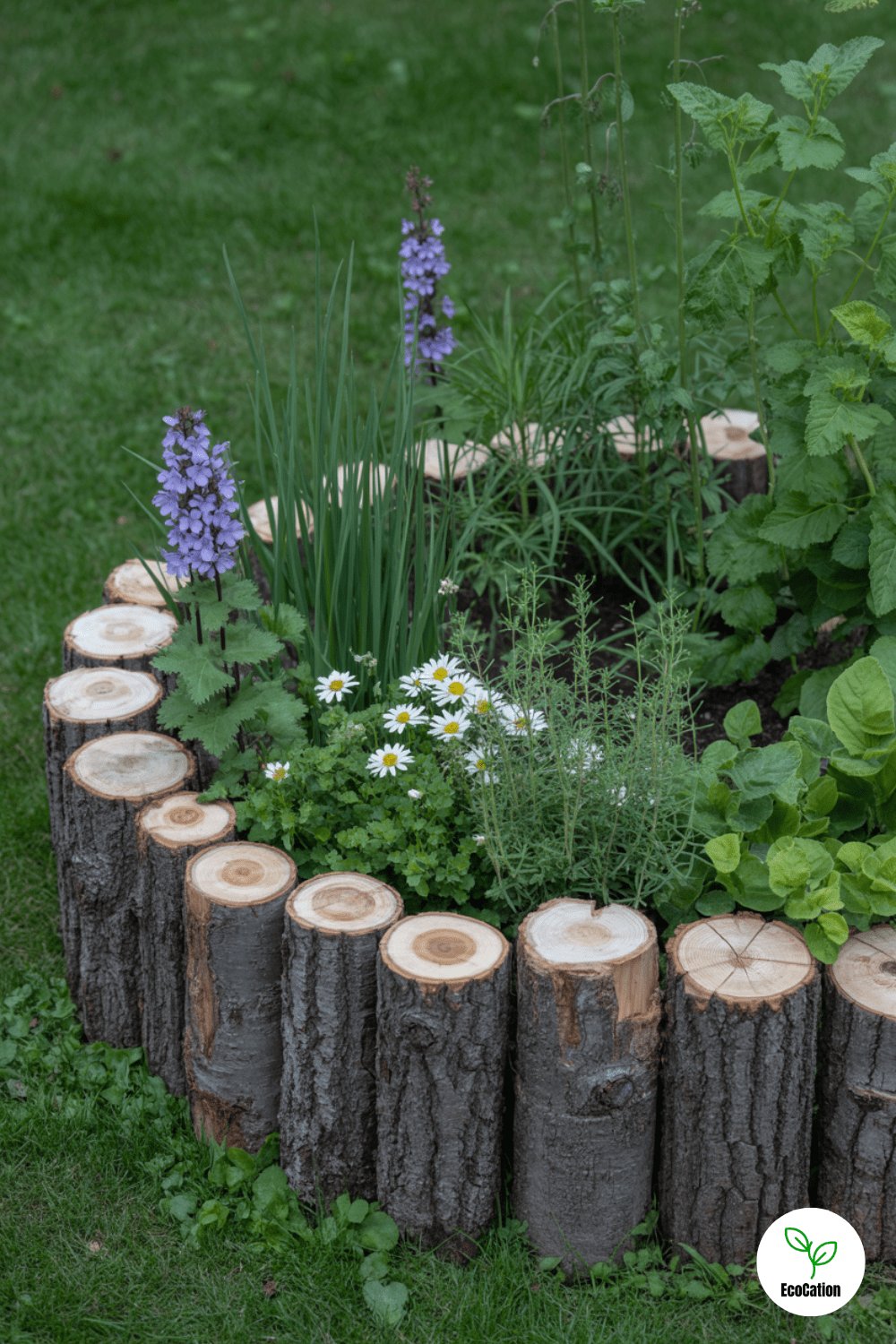 Upright slices of tree logs bring rustic charm and are perfect for herb or wildflower beds. Choose logs of similar height for a tidy appearance, or mix sizes for a whimsical effect. Sealing the wood will help it last longer outdoors.