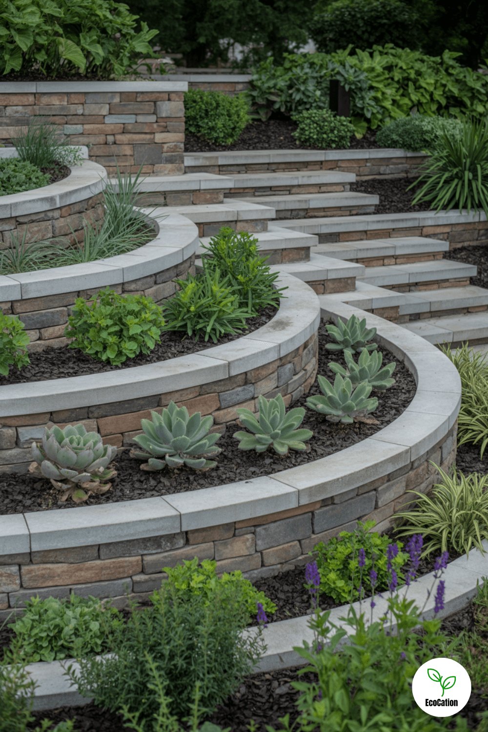 Multilevel stone edging is a smart way to manage sloped yards while creating beautiful tiers. Each layer can host different plants, from cascading ground cover to upright perennials. Use heavy stones and secure with gravel or soil for lasting support.