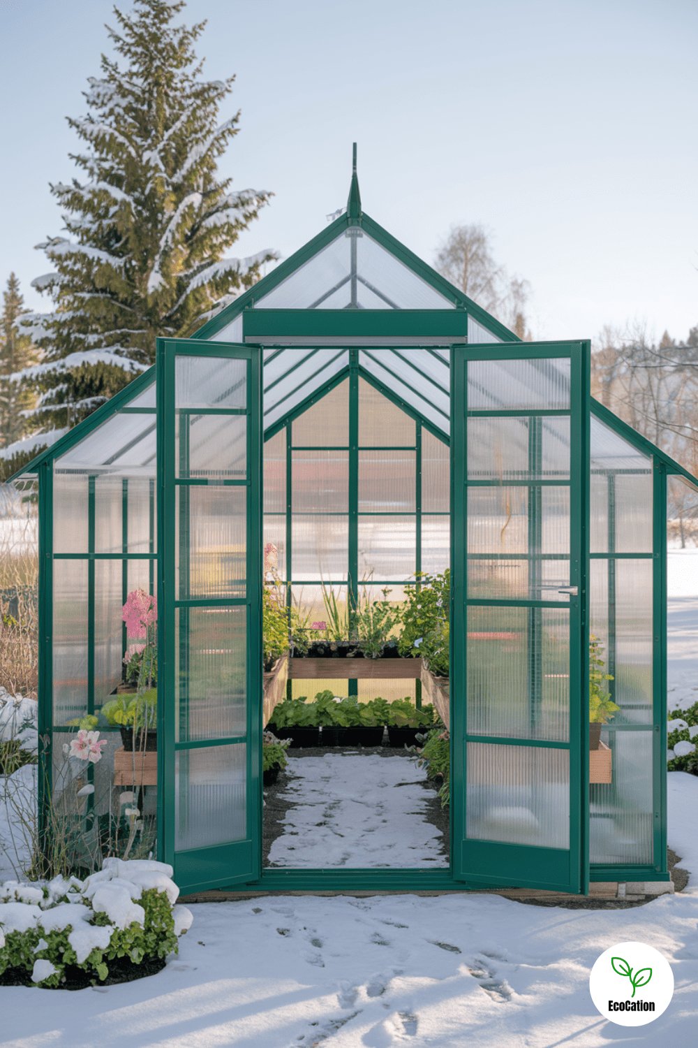 A fully insulated greenhouse with thick polycarbonate walls ensures your plants stay warm and healthy even during snowy winters. This is perfect for gardeners who want to extend their growing season. Practical tip: Use heating cables or mats for extra warmth in extreme cold, and keep an eye on your humidity levels to prevent mold growth.