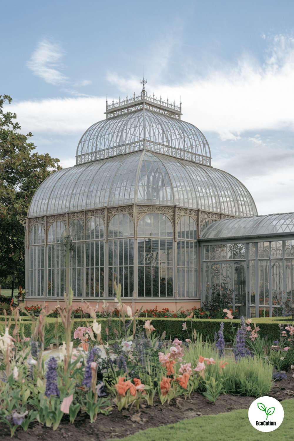 For those with a taste for vintage style, a Victorian-style greenhouse featuring intricate ironwork and glass panels will instantly add elegance to your garden. Surrounded by a flower garden, it becomes a stunning architectural feature. Practical tip: Use a mix of annuals and perennials to ensure that your greenhouse looks beautiful year-round.