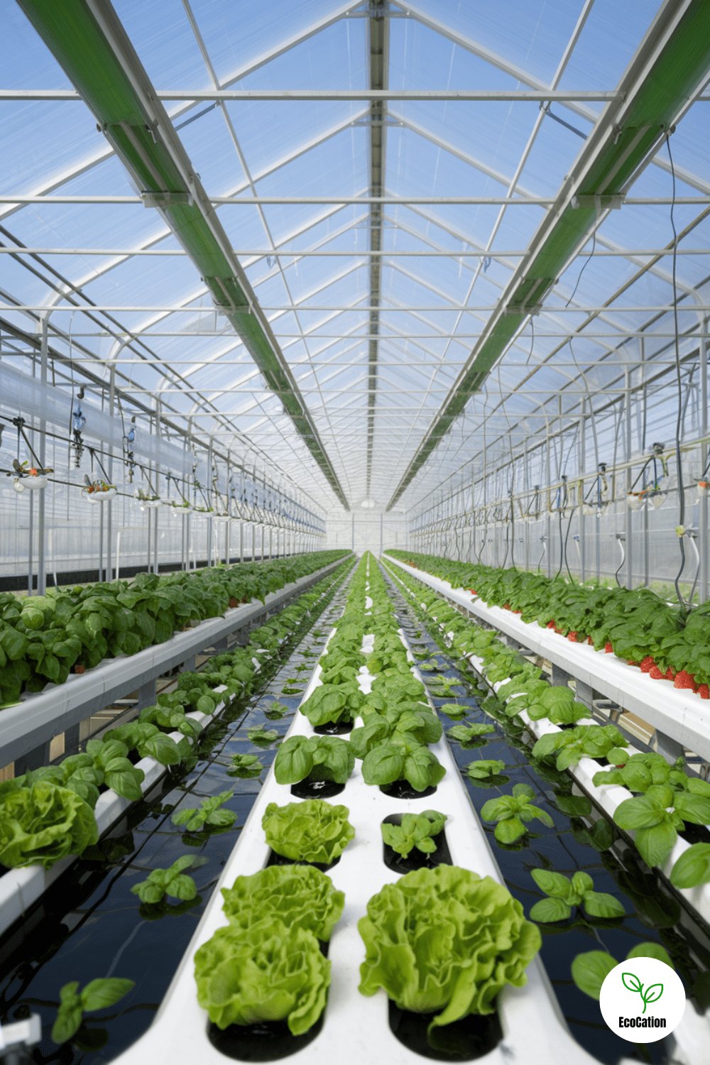 A high-tech hydroponic greenhouse with nutrient-rich water channels allows you to grow fresh lettuce, basil, and strawberries without soil. This modern method is perfect for those who want to grow food in an eco-friendly, water-efficient way. Practical tip: Keep the water circulating to avoid stagnation, and regularly check for nutrient imbalances.