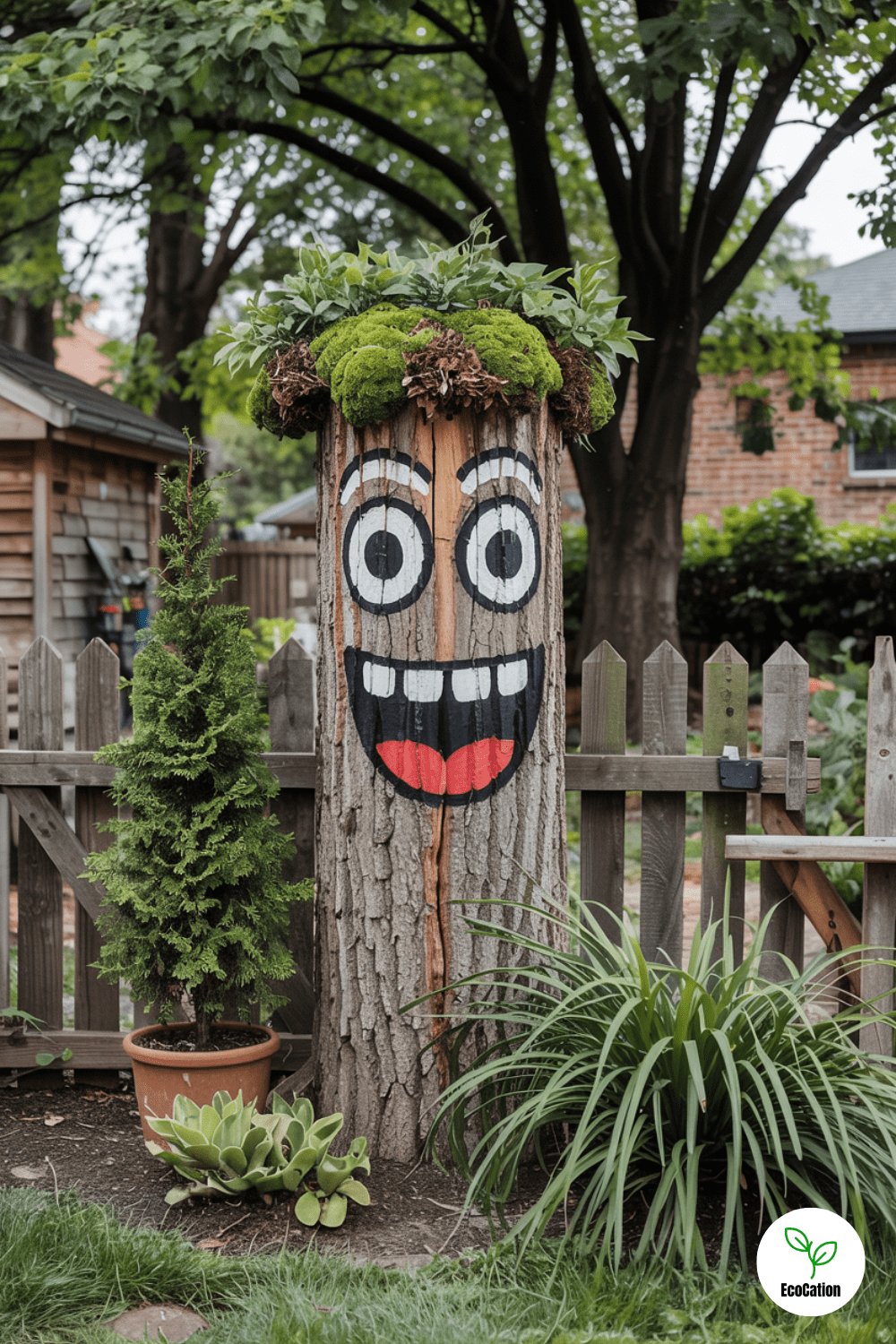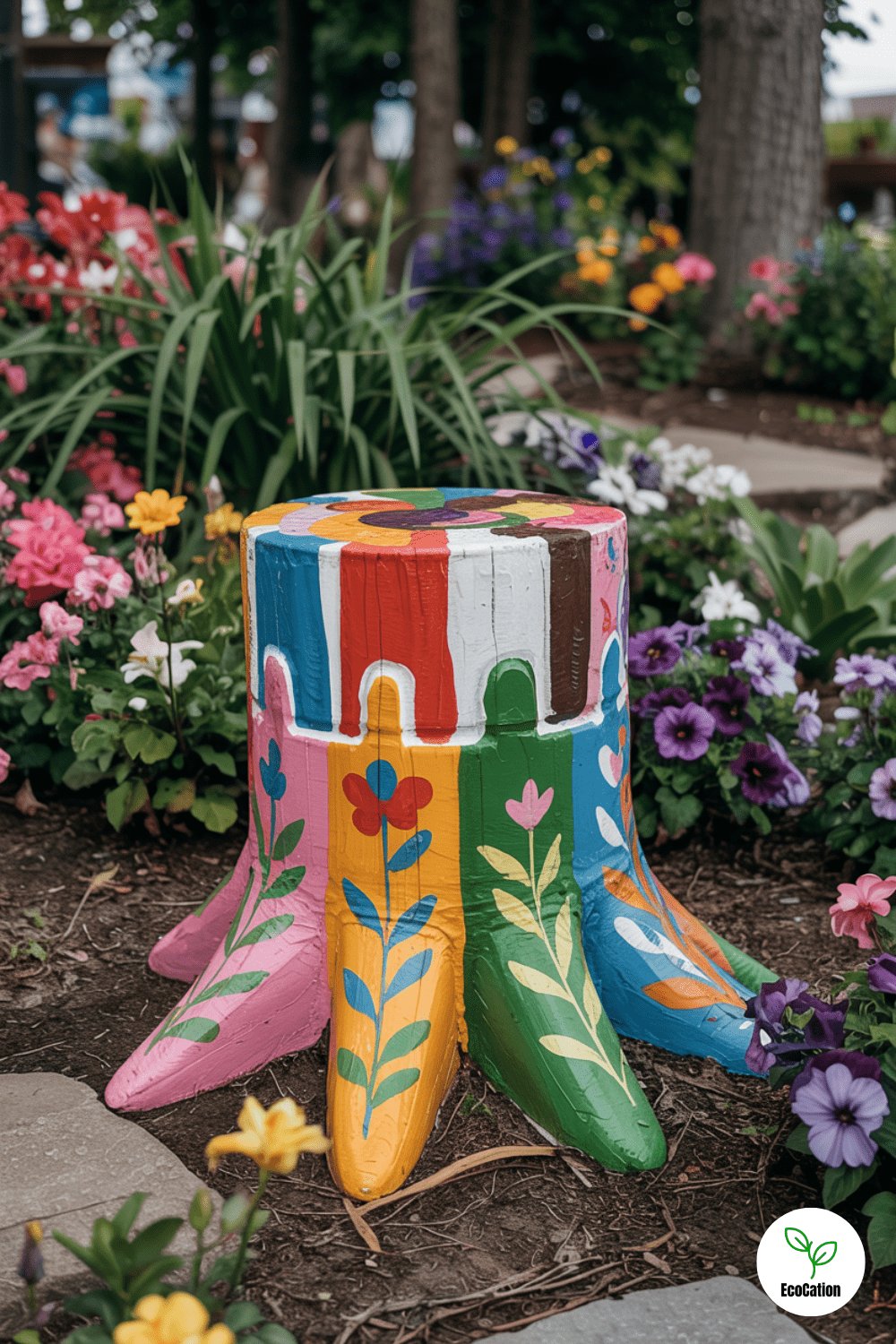 Brighten up your landscape with a cheerfully painted stump. Use outdoor acrylic paints to create floral designs, geometric patterns, or even a trompe l oeil surprise. Prime the wood first for better paint adhesion, and finish with a clear weatherproof sealant. This is a great project to get kids involved in garden decor let them create their own designs!