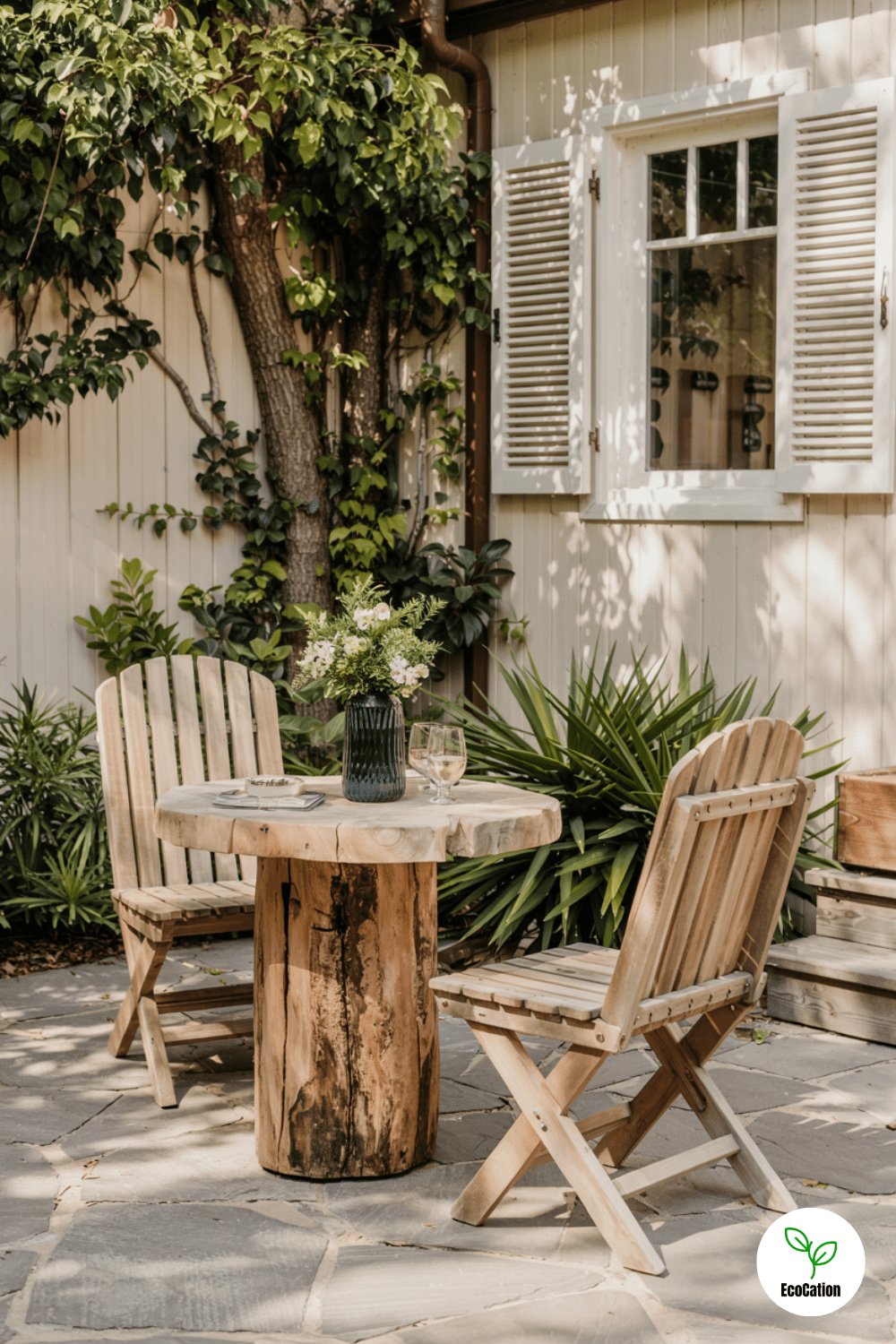 That flat-topped stump beside your outdoor chairs? It s nature s perfect side table! Sand it smooth and apply a weather-resistant sealant to protect the surface. The organic shape adds rustic charm to any patio setup. For extra flair, stencil a design on top or attach small hooks underneath to hold napkins or a trash bag for outdoor dining.