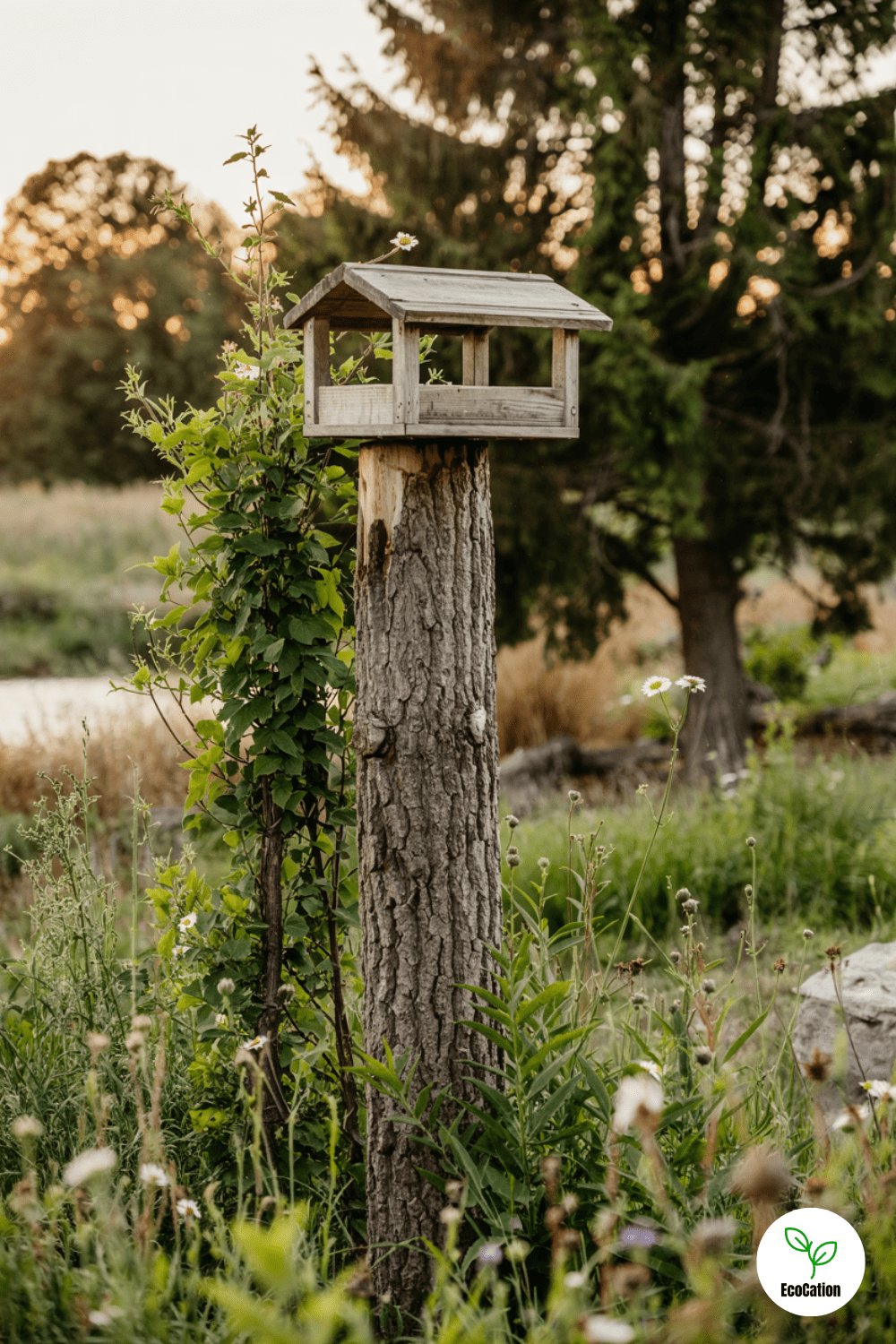 Give birds a natural dining spot by mounting a wooden feeder on top of a tall stump. Choose a location with good visibility so you can enjoy the show from your windows. Surround the base with native plants that produce seeds or berries to create a complete bird buffet. Clean the feeder regularly to prevent mold and disease transmission.