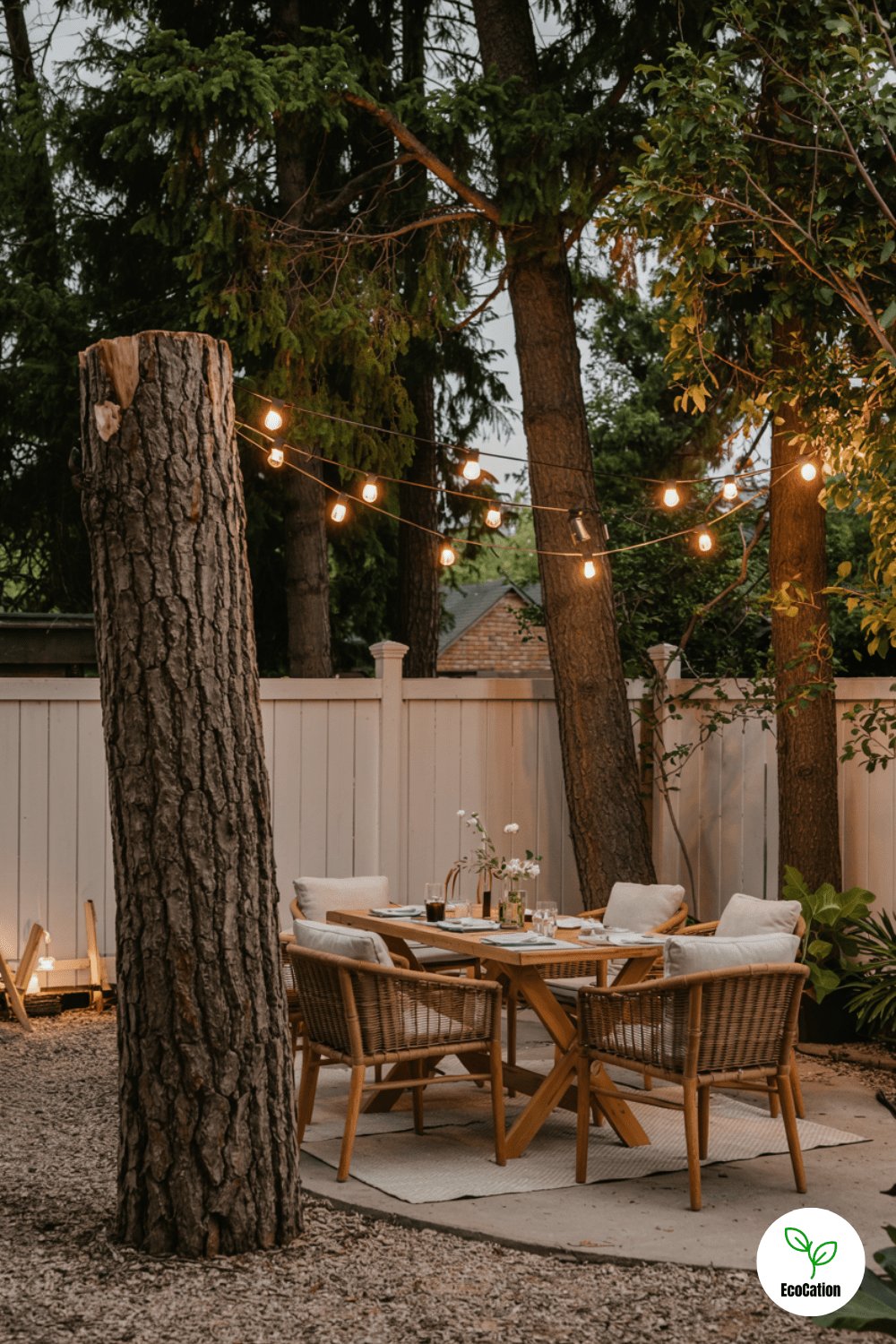 Use a sturdy stump as a natural post for hanging string lights over your patio or dining area. Secure the lights with cup hooks screwed into the sides, leaving enough slack for gentle draping. The wood s texture contrasts beautifully with the delicate lights. For stability, choose a thick stump or anchor it with decorative rocks around the base.