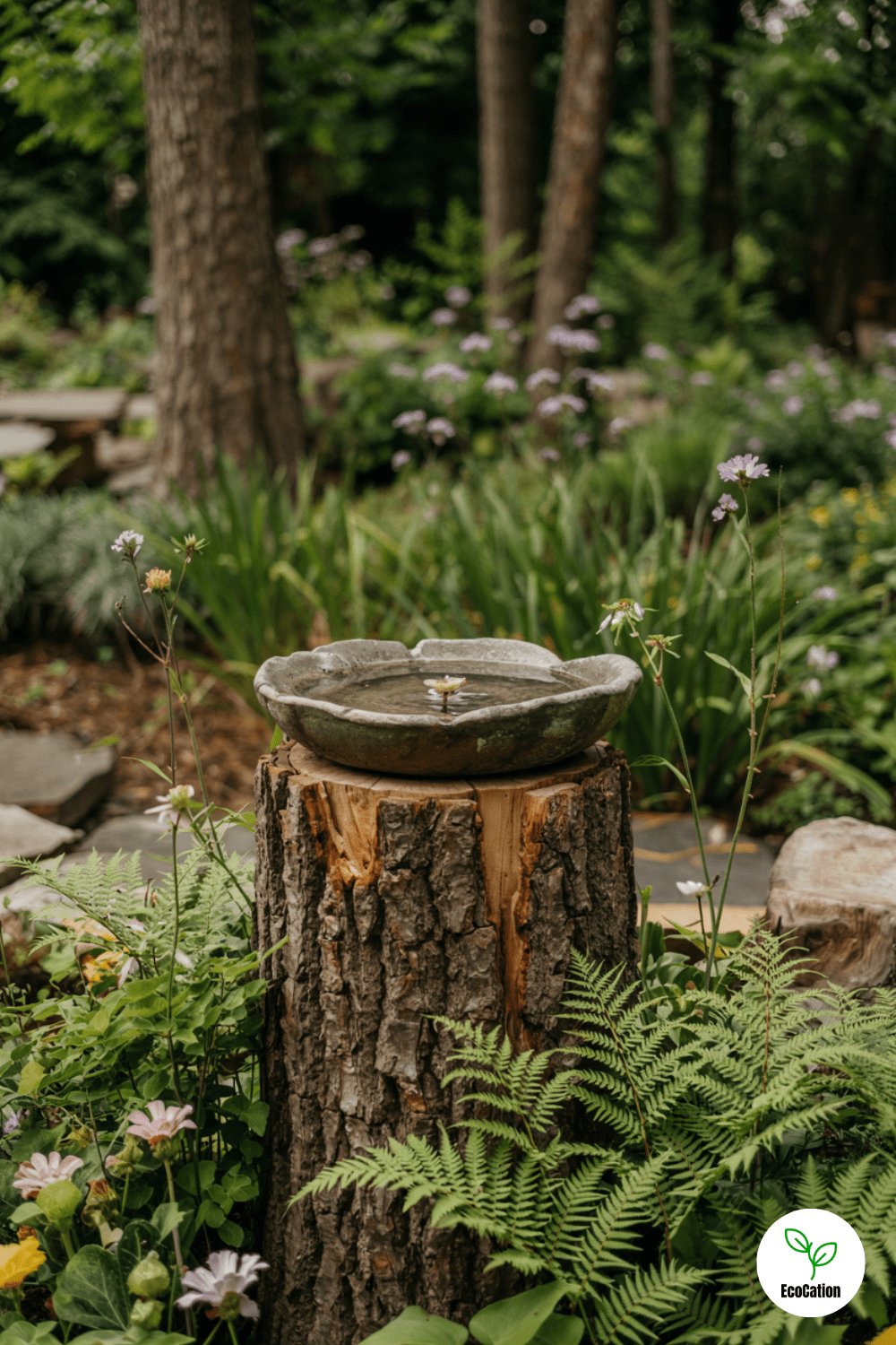 Transform a wide stump into a charming bird bath by adding a shallow stone or ceramic basin to the top. Position it near trees or shrubs so birds have cover while bathing. Keep the water fresh and clean by scrubbing the basin weekly you ll be rewarded with regular feathery visitors! Surround the base with native plants to create a complete wildlife habitat.