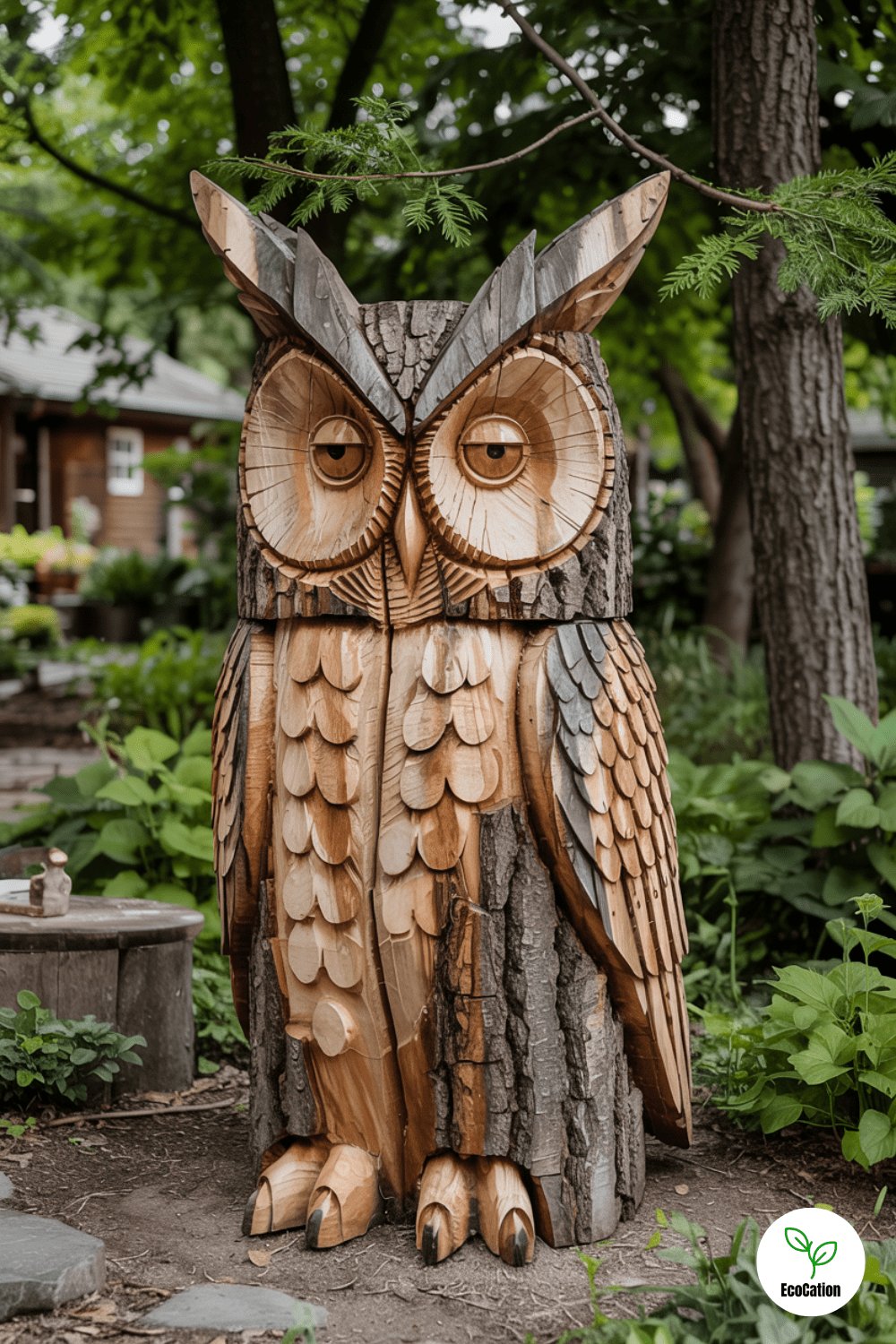 Commission a chainsaw artist or try your hand at carving a majestic owl from a tall stump. Position your feathered guardian in a shaded spot where it can watch over your garden. Apply wood preservative annually to protect your sculpture. For extra realism, add glass eyes or use different wood stains to create feather details.