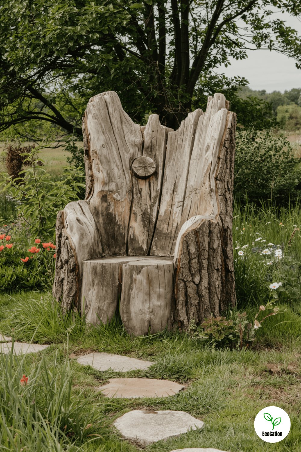 Commission a talented woodworker or try your hand at carving a stump into a functional chair. Leave the back tall for support, and smooth the seat for comfort. Place it in a secluded garden nook with soft cushions and a side stump-table for the perfect reading retreat. Treat the wood annually to preserve your unique outdoor furniture for years of enjoyment.