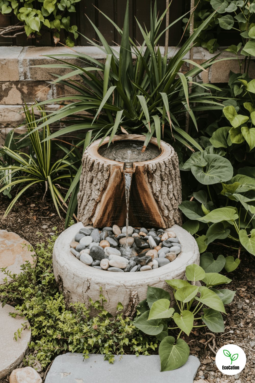 Create a soothing water feature by channeling a small pump s flow through a hollowed stump into a pebble basin below. The sound of trickling water masks street noise while attracting birds and beneficial insects. Use aquatic plants around the base to soften the edges, and install low-voltage lighting to enjoy the feature after dark.