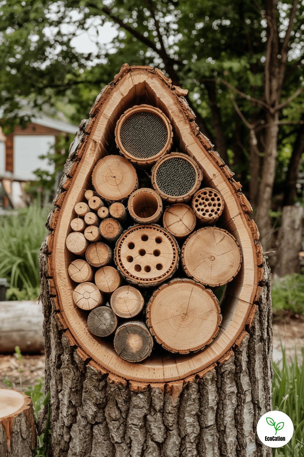 Support your garden s ecosystem by converting a hollow stump into an insect habitat. Pack it with natural materials like bamboo, pine cones, and drilled wood blocks to attract beneficial pollinators and pest predators. Position it in a quiet garden corner where bugs can thrive undisturbed. Different materials attract different species experiment to see who moves in!