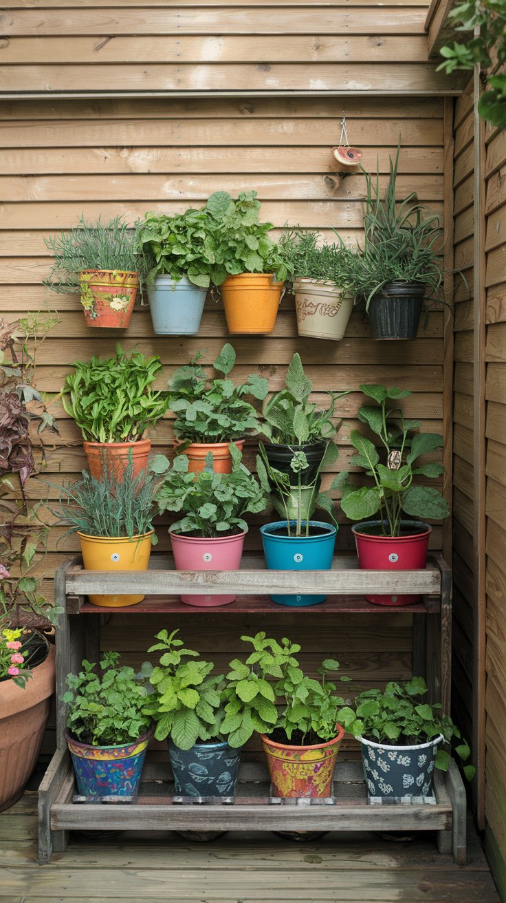 Use recycled pots creatively to grow herbs in a compact space. Paint or decorate the pots for a personal touch and group them on a small shelf. This eco-friendly approach adds charm while saving money and resources.
