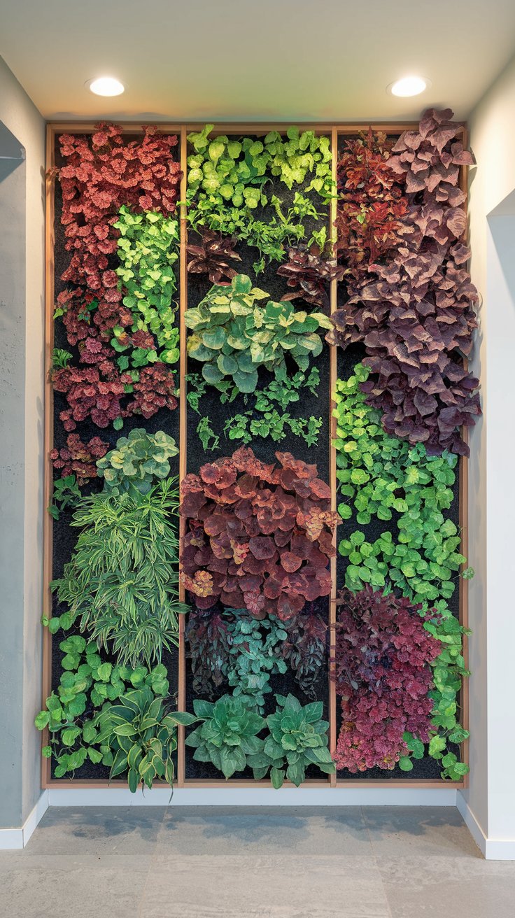 Install a vertical green wall with built-in lighting to highlight lush greenery like ferns and philodendrons. Position it as a focal point in your living room to impress guests. Automated lighting and irrigation systems ensure your wall garden stays vibrant year-round.