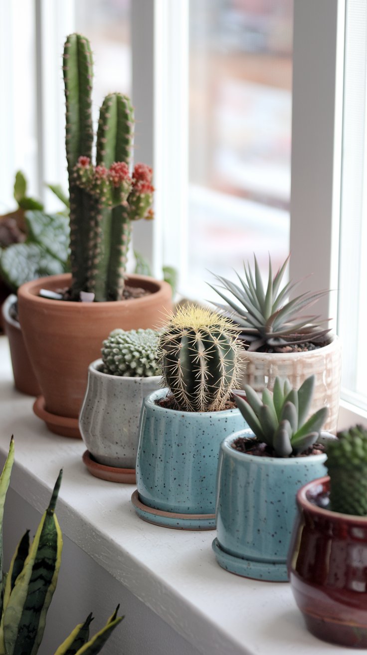 Bring the desert indoors with a cactus garden on your windowsill. Use unique ceramic pots to showcase different cactus species. Place them in a sunny spot, and water sparingly to keep them happy and healthy.