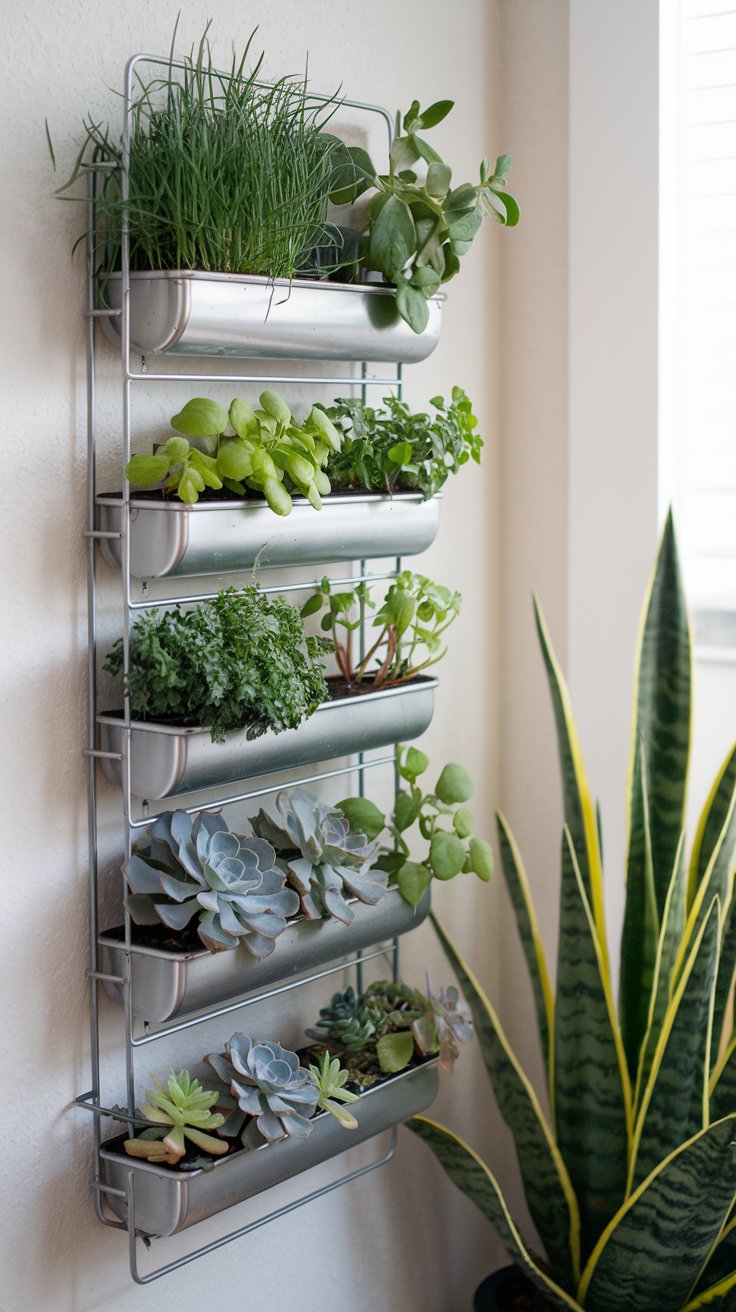 Create an indoor garden using a compact metal frame to grow rows of fresh herbs. Opt for lightweight, movable frames to fit small spaces. Position them near a window or use grow lights for consistent growth and easy harvesting.