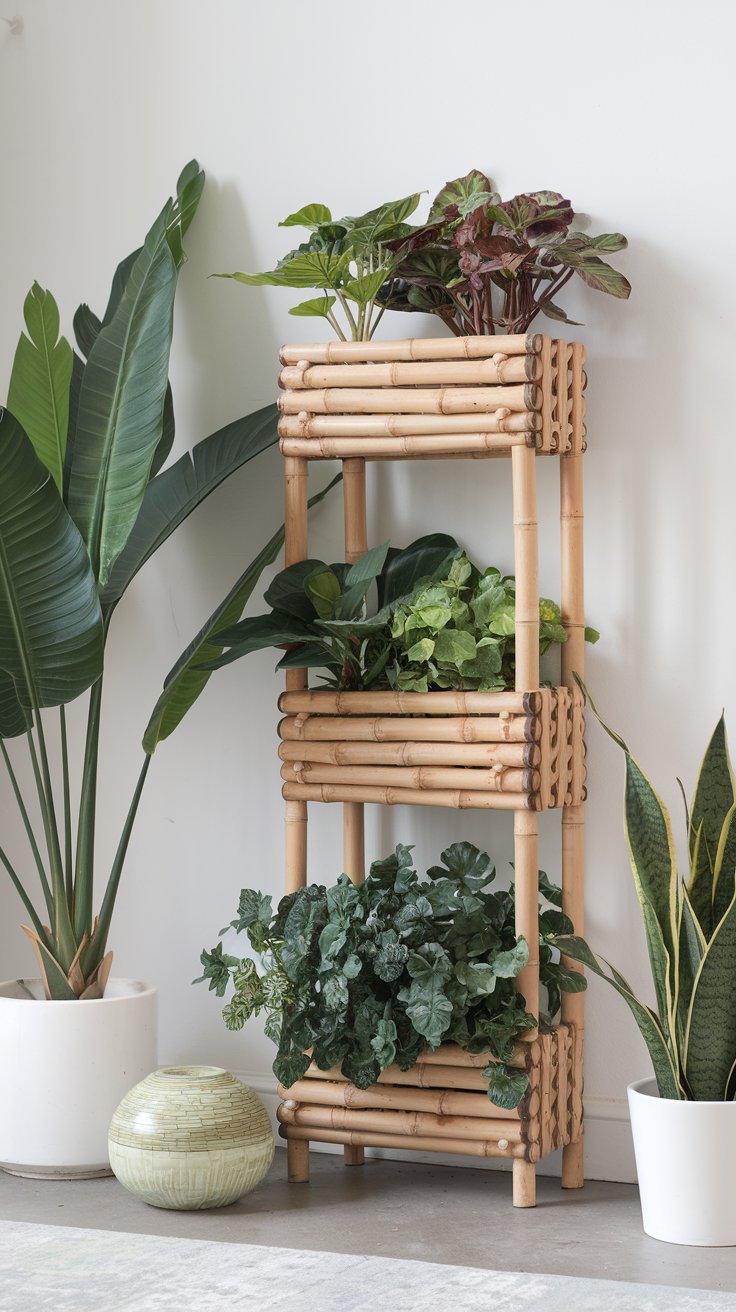 Bamboo Planters with Lush Greenery