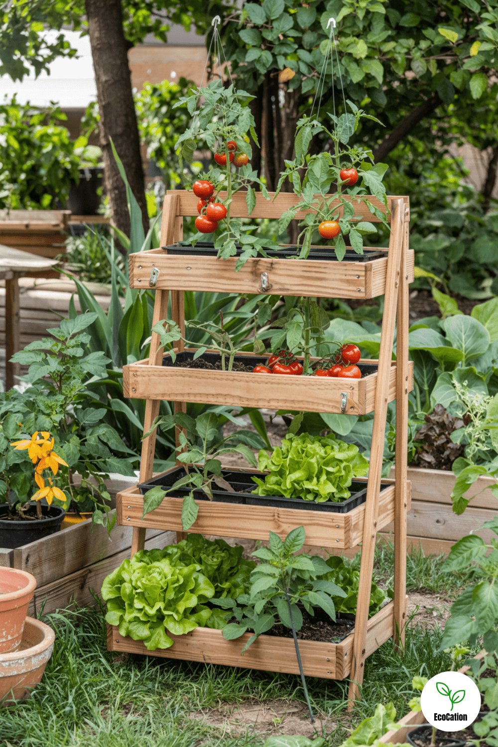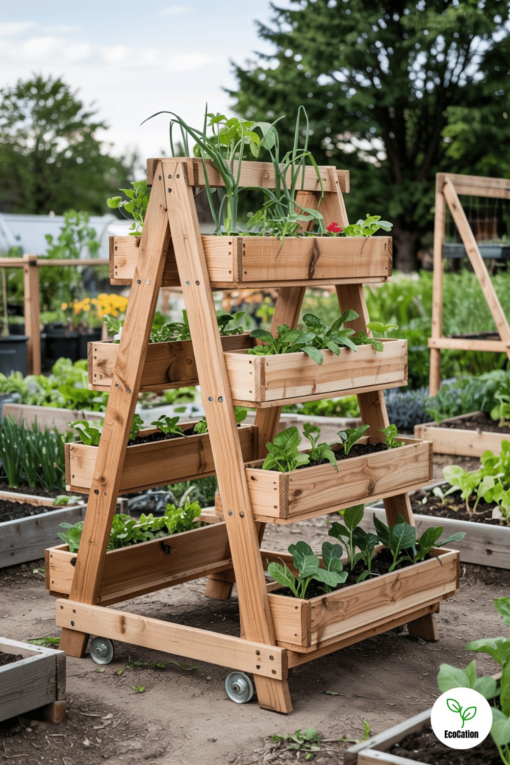 A wooden A-frame with staggered planters gives you vertical gardening on the go. It s easy to move for optimal sunlight, and the angled design allows rainwater to trickle down naturally. Great for renters or anyone who likes to rearrange often.