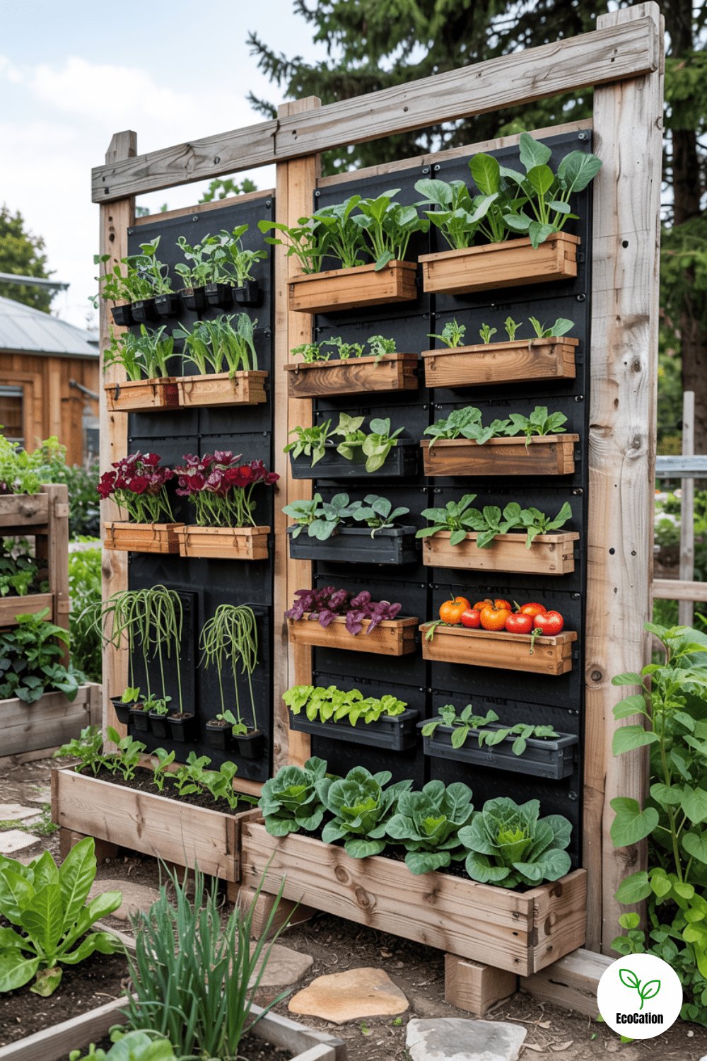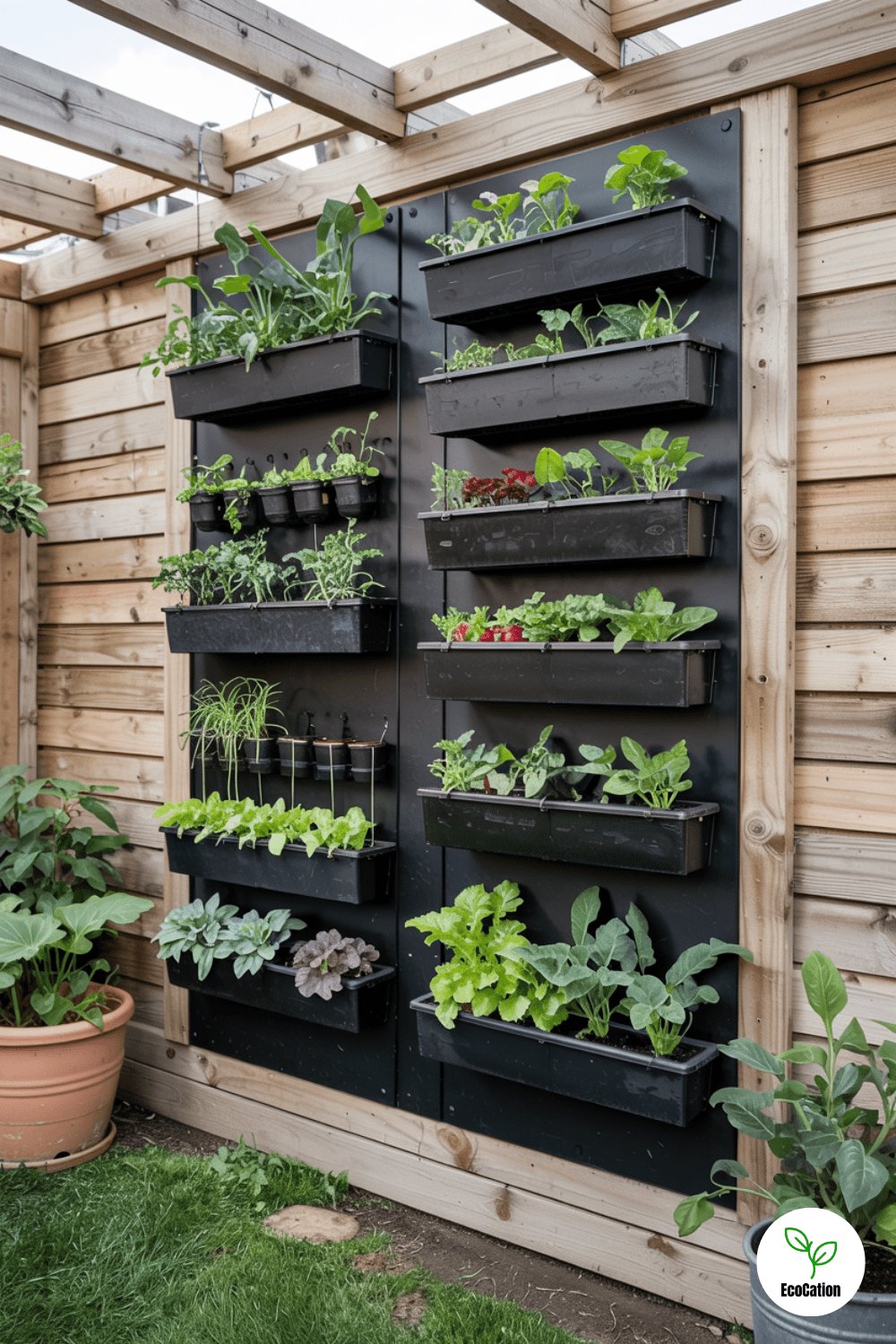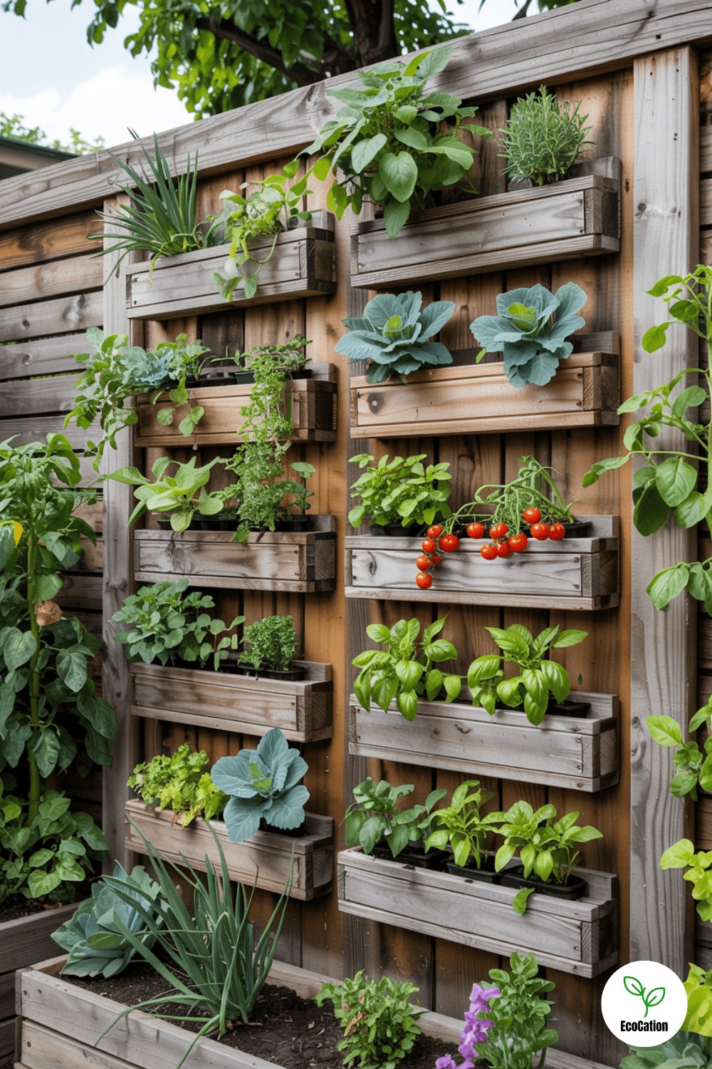 This garden wall packs herbs, kale, and cherry tomatoes into stacked wooden planters turning any fence or bare wall into a thriving edible oasis. Choose crops that thrive together and water from the top down to make gravity your helper. A living wall not only saves space but looks like art.