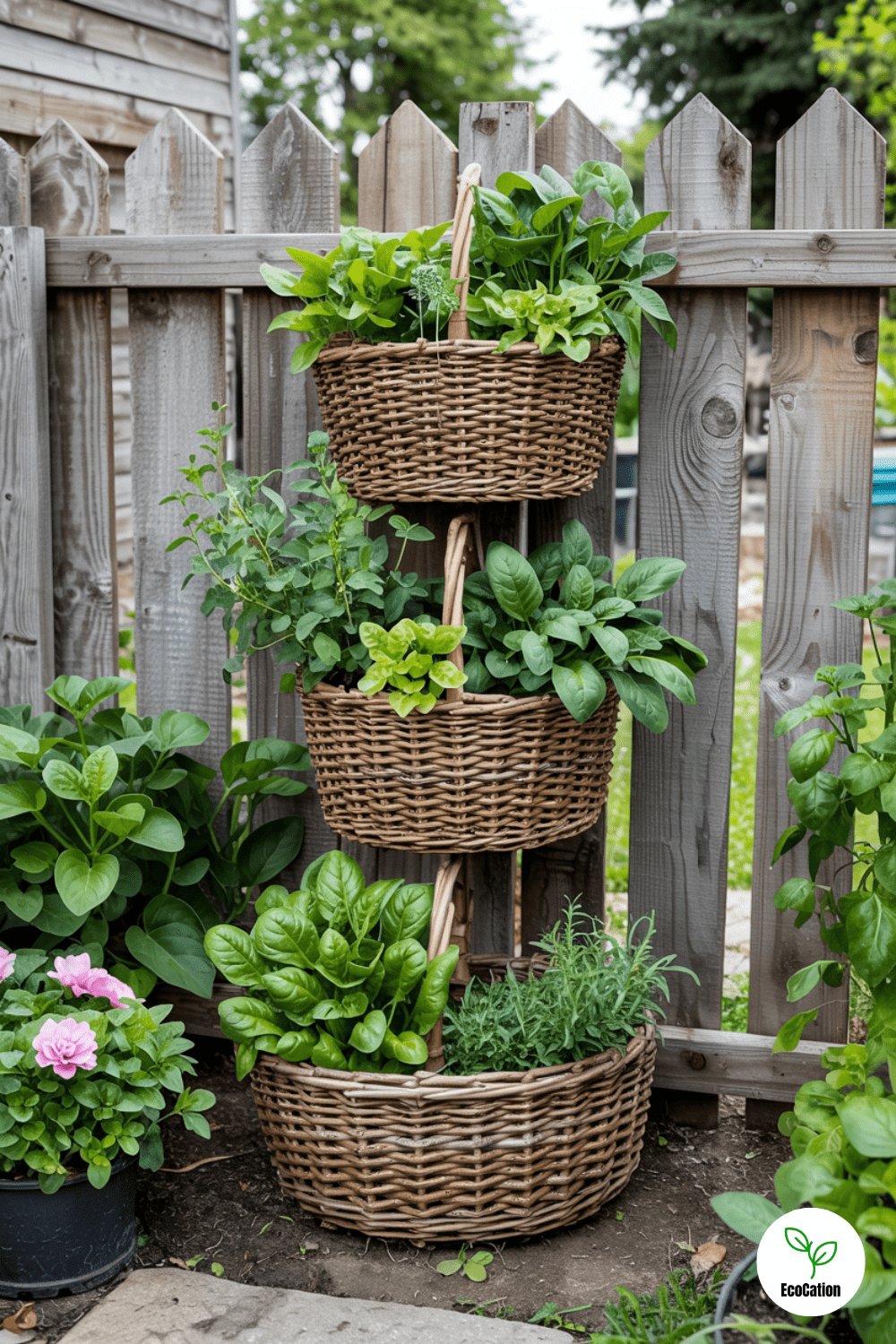 Got a neglected corner? Fill it with tiered baskets bursting with spinach and oregano. This vertical hack transforms dead space into a productive growing zone, and it s a charming touch for courtyards or small backyards.