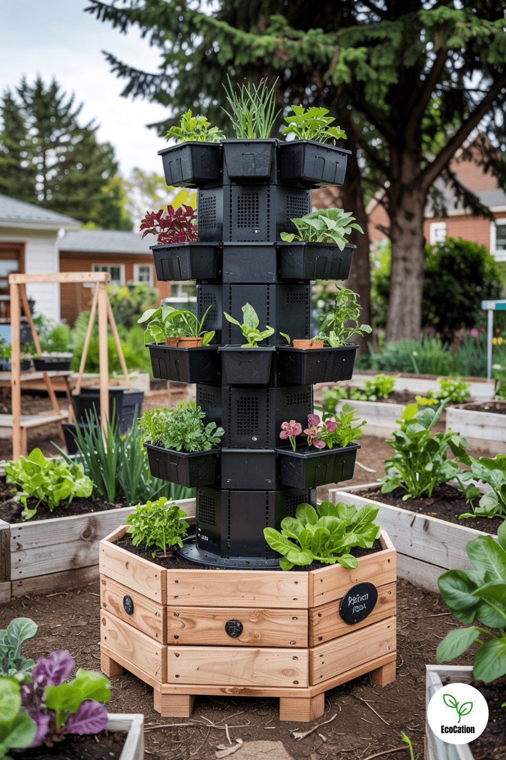 This garden showcases everything from towers to wall grids in one cohesive space. Try combining different types of vertical setups to maximize variety and yield. It s ideal for experimenting and learning what grows best in your space.