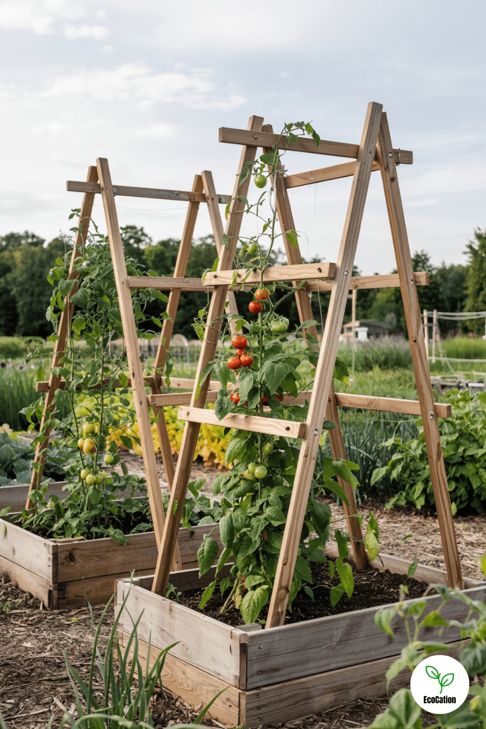 Tomatoes and pole beans climb tall wooden trellises with grace and purpose. Add twine or mesh to support vertical growth, and plant low-growing herbs at the base. It s a practical way to keep climbers contained and thriving.