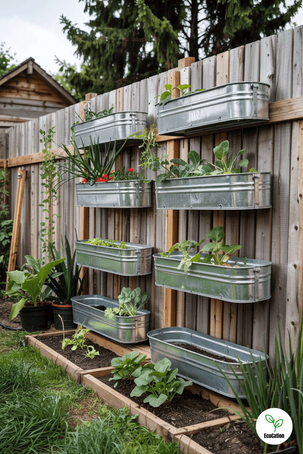 Metal planters on a tall fence make great use of vertical real estate, and the built-in drip irrigation system keeps it all low-maintenance. Perfect for busy gardeners who still want fresh herbs and salads without the fuss.