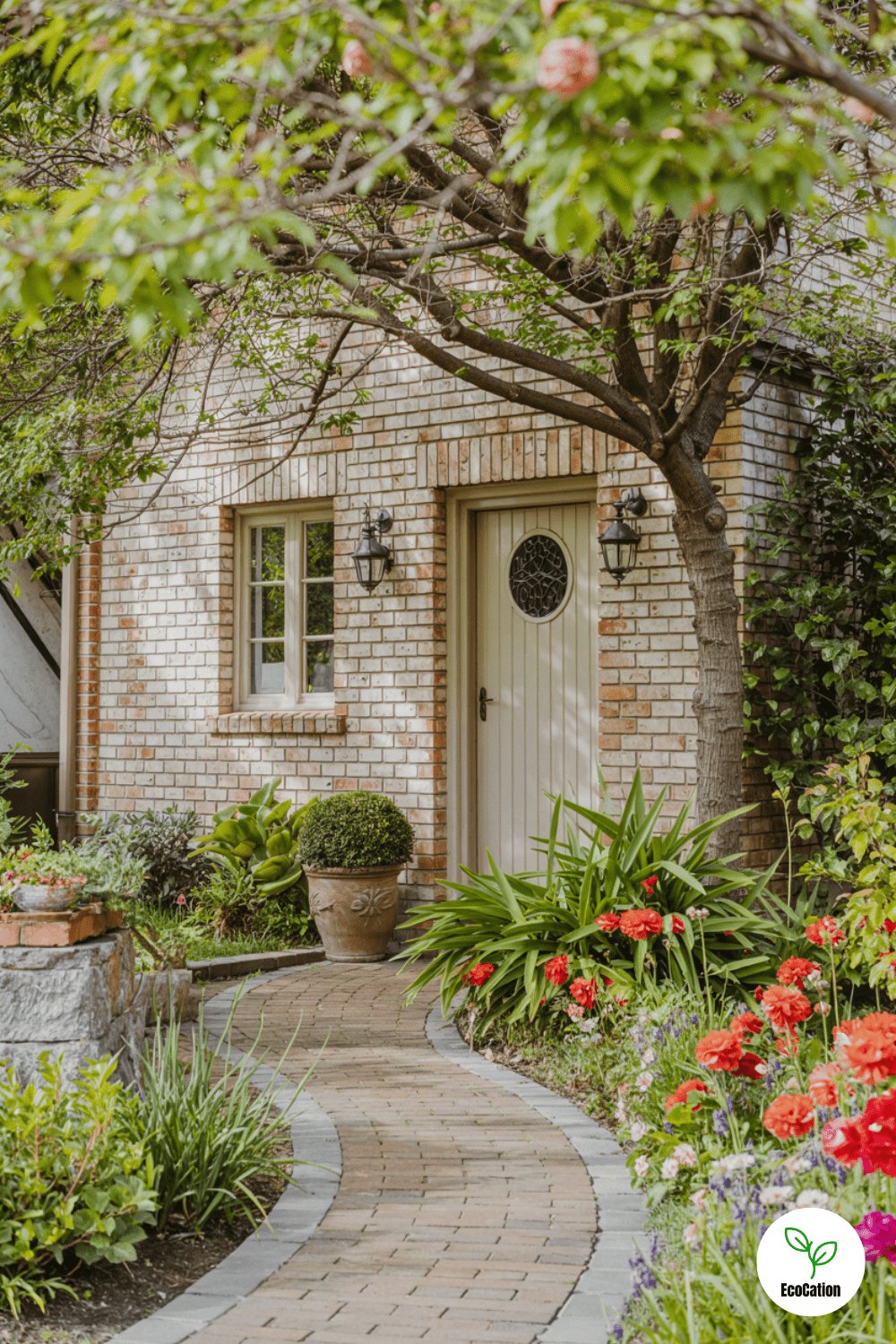 A brick walkway leading to a cottage-style home exudes timeless appeal. Herringbone or basketweave patterns add visual interest, while aged bricks bring rustic character. For a low-maintenance option, set bricks in sand rather than mortar they ll develop a charming weathered look over time.