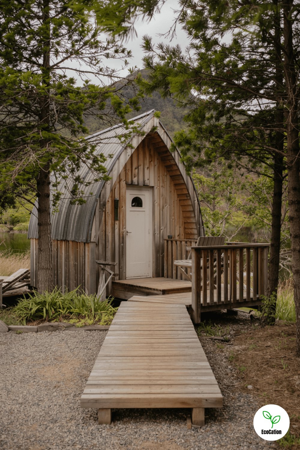 A rustic wooden plank walkway leading to a hidden garden nook offers peaceful escape. Use reclaimed timber for a weathered look, and let native ferns or wildflowers grow alongside. This simple, natural design is perfect for quiet contemplation.