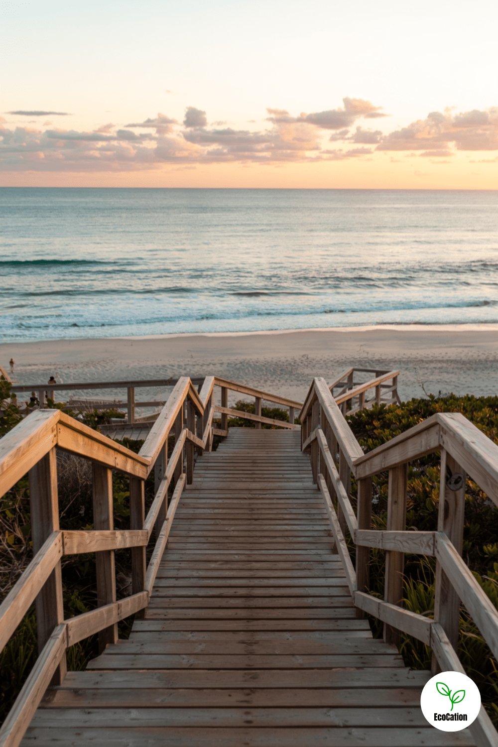 A weathered wooden walkway leading to the beach brings coastal charm to any yard. Use treated lumber or composite decking to withstand salt air, and leave small gaps between planks for sand and water to filter through. Add rope railings for a nautical touch.