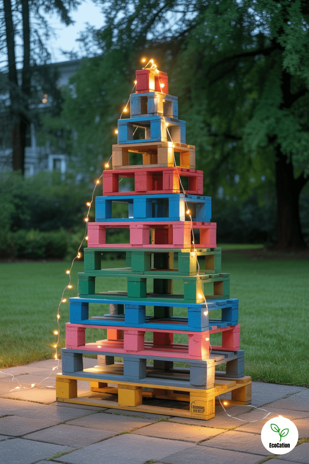 Why buy new when you can DIY something truly unique and sustainable? Craft a standout piece of decor by stacking and painting recycled wooden pallets into a clever, geometric Christmas tree shape. Trace the edges with bright LED outdoor lights to showcase your creative and eco-friendly carpentry skills it s a conversation starter and a total win for planet Earth.