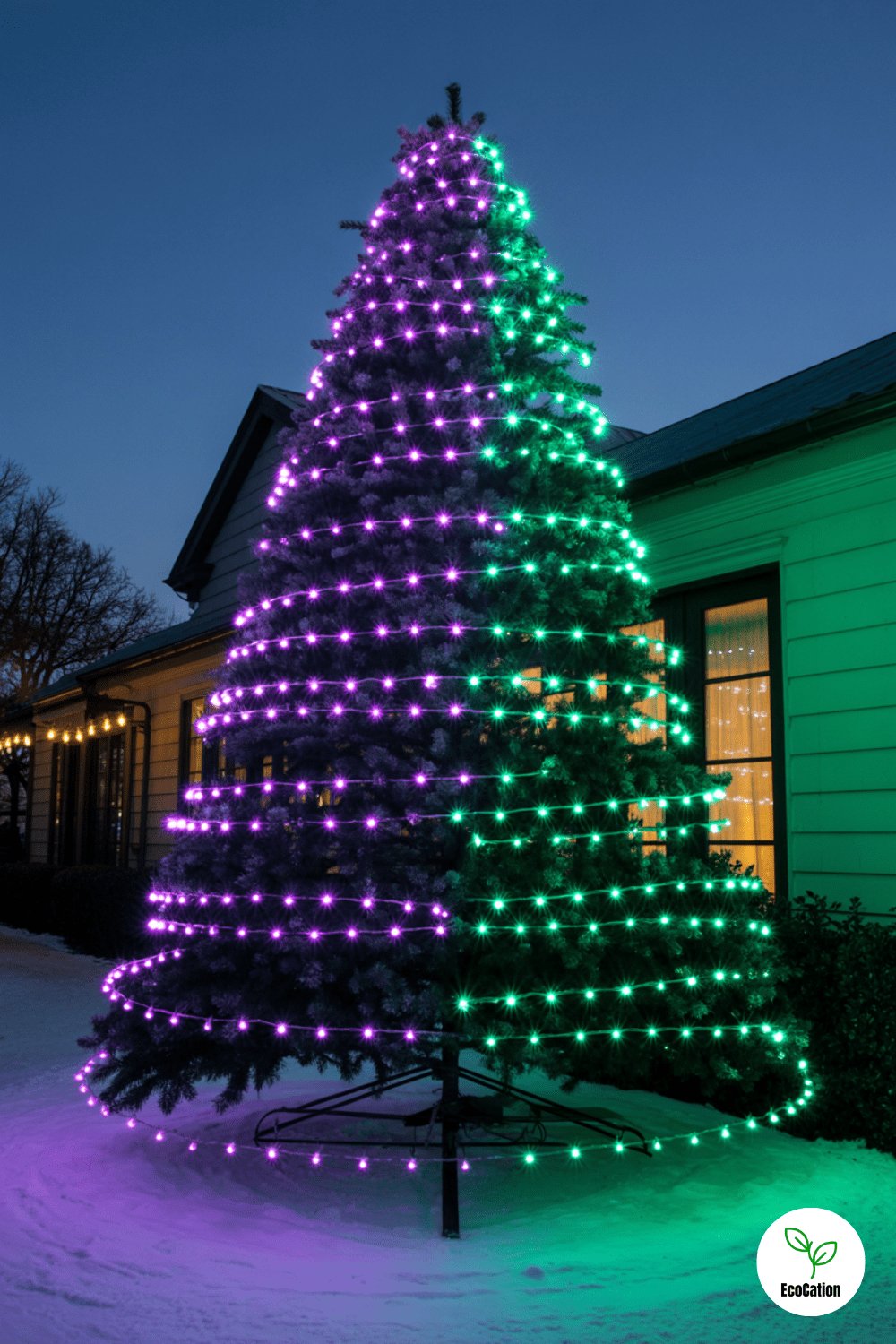 Stand out from the traditional crowd with a bold color choice using alternating strands of deep purple and emerald green lights. This festive and unexpected combination is a fantastic example of modern outdoor decorating ideas. Don t be afraid to experiment with your palette sometimes the most memorable displays come from the most creative choices!