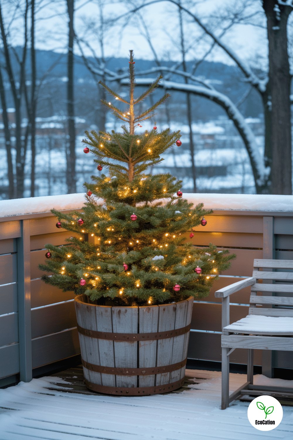 Don t let a small space stop you from celebrating in style! A simple, warm-lit tree nestled in a weathered wooden barrel is the perfect cozy solution for a balcony or tiny porch. To achieve a classy Christmas ambiance, stick to warm white lights and just a few simple red accents it proves that less can definitely be more when you re going for that serene, snowy look.
