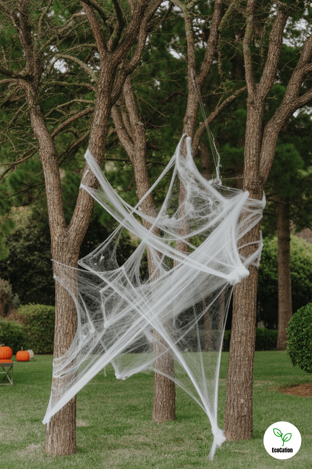Transform tall garden trees into creepy masterpieces with oversized spiderwebs. You can buy ready-made versions or stretch cotton webs across branches for a DIY approach. Add a few giant plastic spiders for maximum impact just be sure they re visible from afar to create a wow moment.