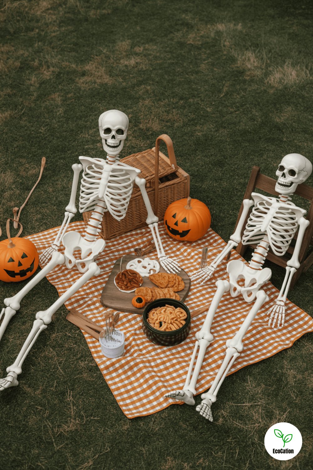 Set skeletons around a picnic blanket filled with Halloween-themed snacks for a playful twist. It s an easy way to add humor while still keeping things on theme. Guests will love discovering this quirky corner and snapping photos with the bony crew.