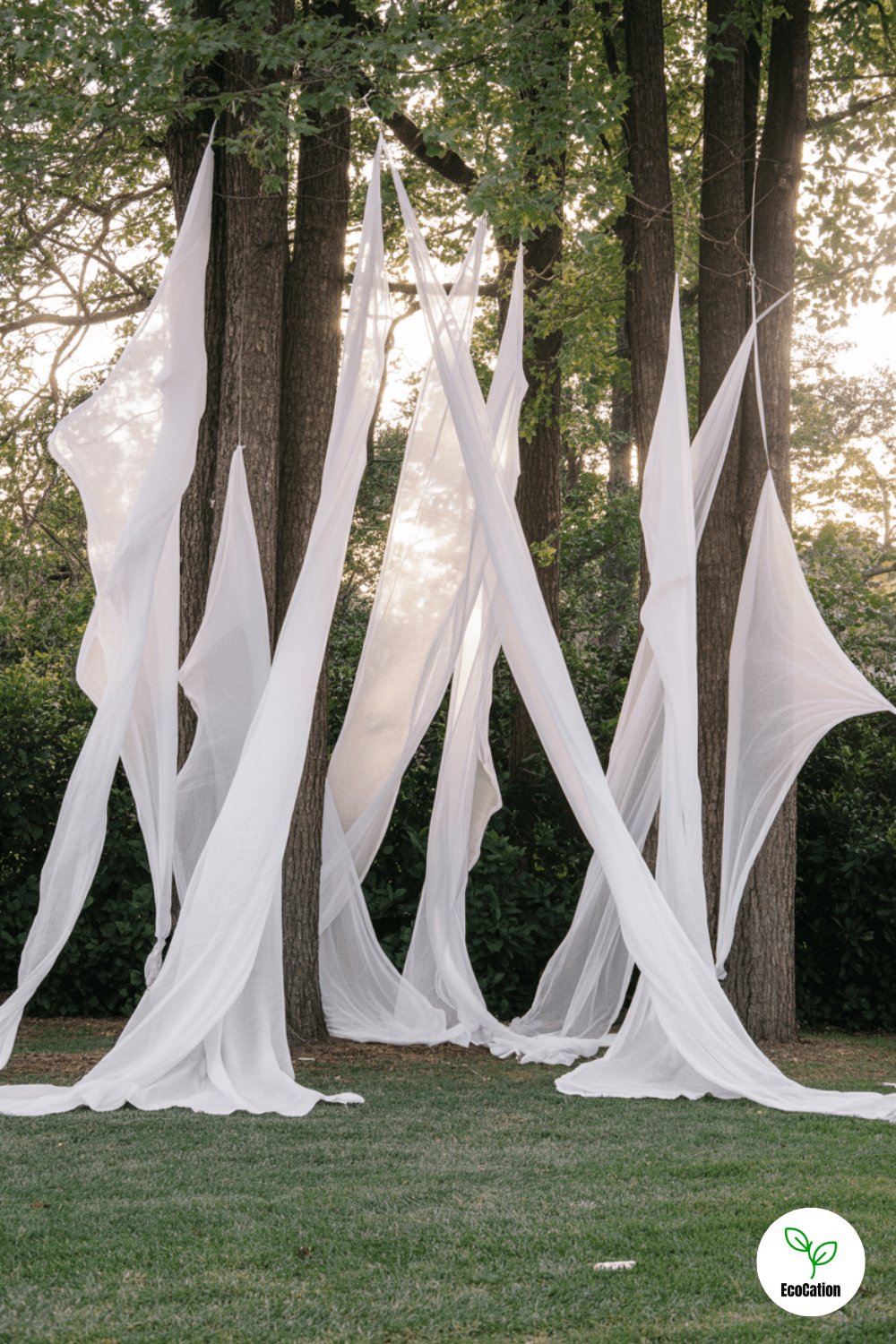 Cover your tall trees with flowing white fabric that sways like spirits in the breeze. The movement alone will give your guests chills. Choose lightweight material so it floats easily and catches any flicker of light for maximum ghostly effect.