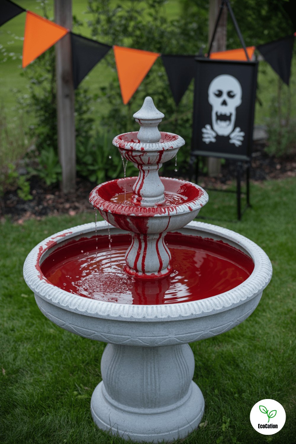Turn your garden fountain into a showstopper by dyeing the water red to resemble blood. It s dramatic, chilling, and guaranteed to get people talking. Pair the fountain with eerie sound effects or mist to make it the centerpiece of your Halloween setup.