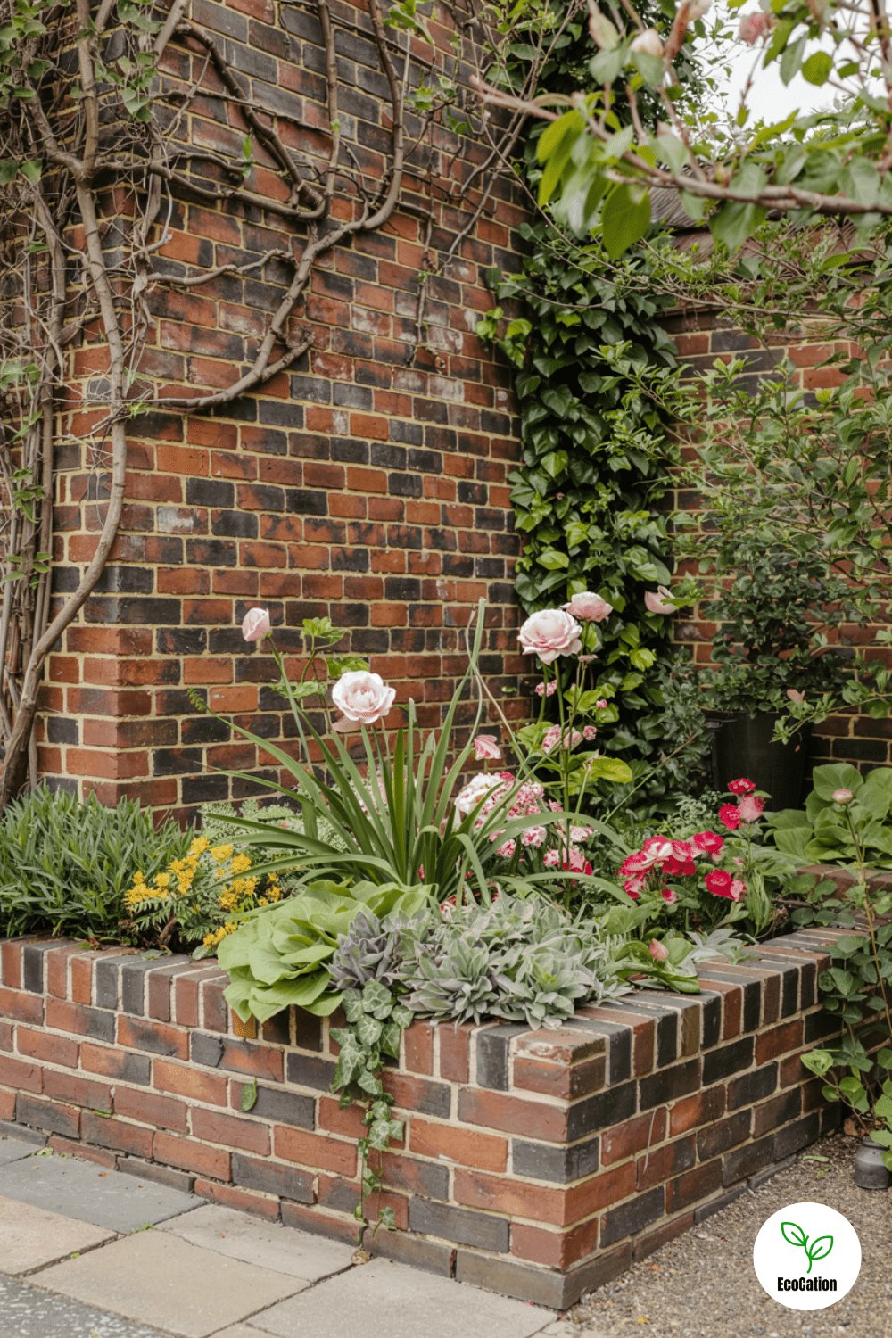 Weathered red bricks and climbing ivy create a storybook-worthy English garden wall. Ivy s roots help stabilize the structure, but trim regularly to prevent overgrowth.