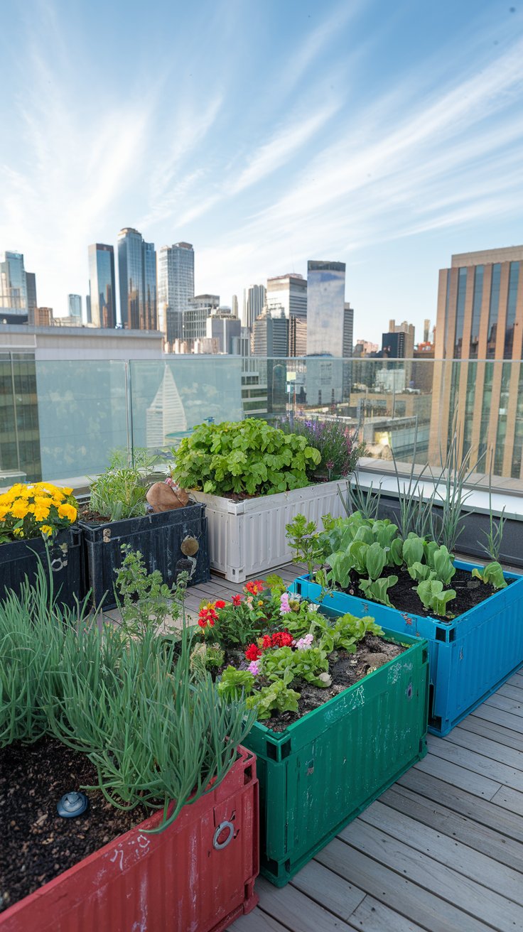 Think sustainability with an eco-friendly rooftop garden using recycled containers. Old wooden crates, metal tins, and unused pots make excellent homes for herbs, vegetables, and flowers. It s a creative and affordable way to turn waste into something beautiful and useful.
