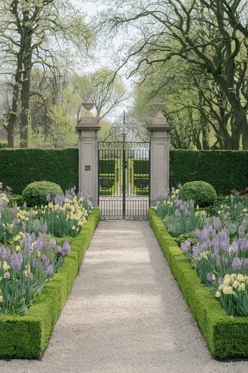 A winding stone path leading to a white gazebo wrapped in climbing roses is the epitome of spring romance. Choose deep red and blush pink roses for a classic color scheme. Keep paths edged with fragrant herbs like thyme for a delightful sensory experience.